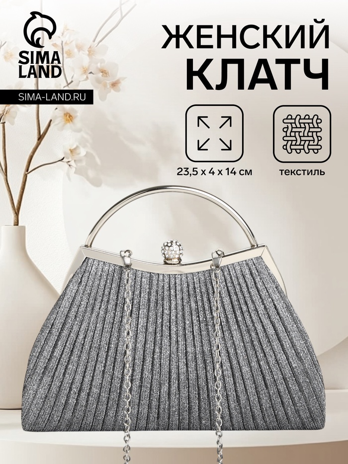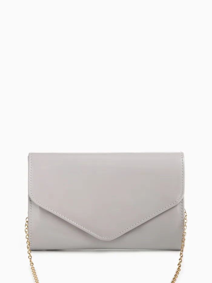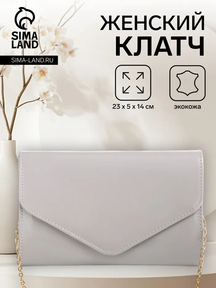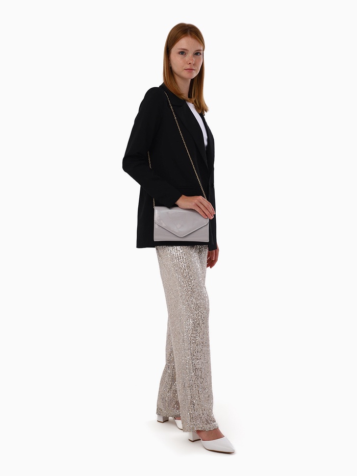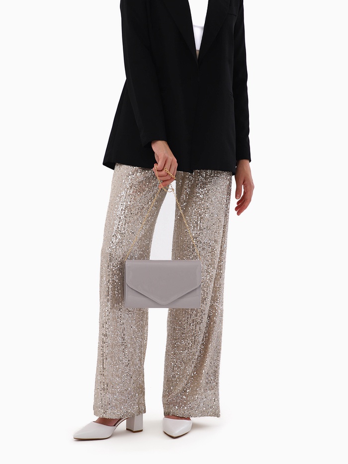 Сумка-клатч женская вечерняя на магните, на длинной цепочке, лаковая, однотонная, серая — Характеристики