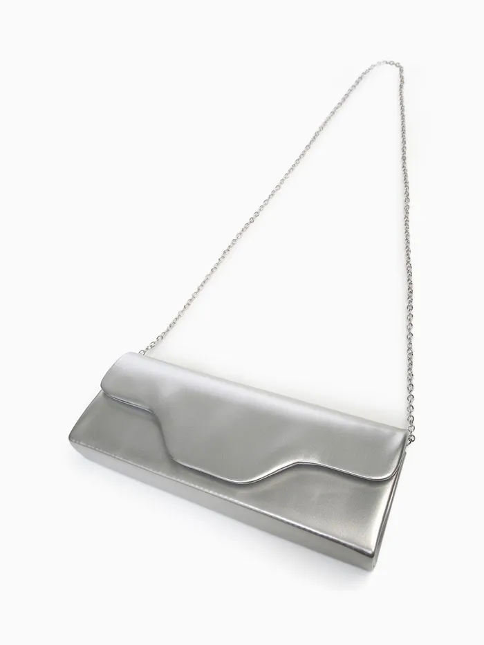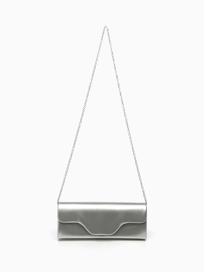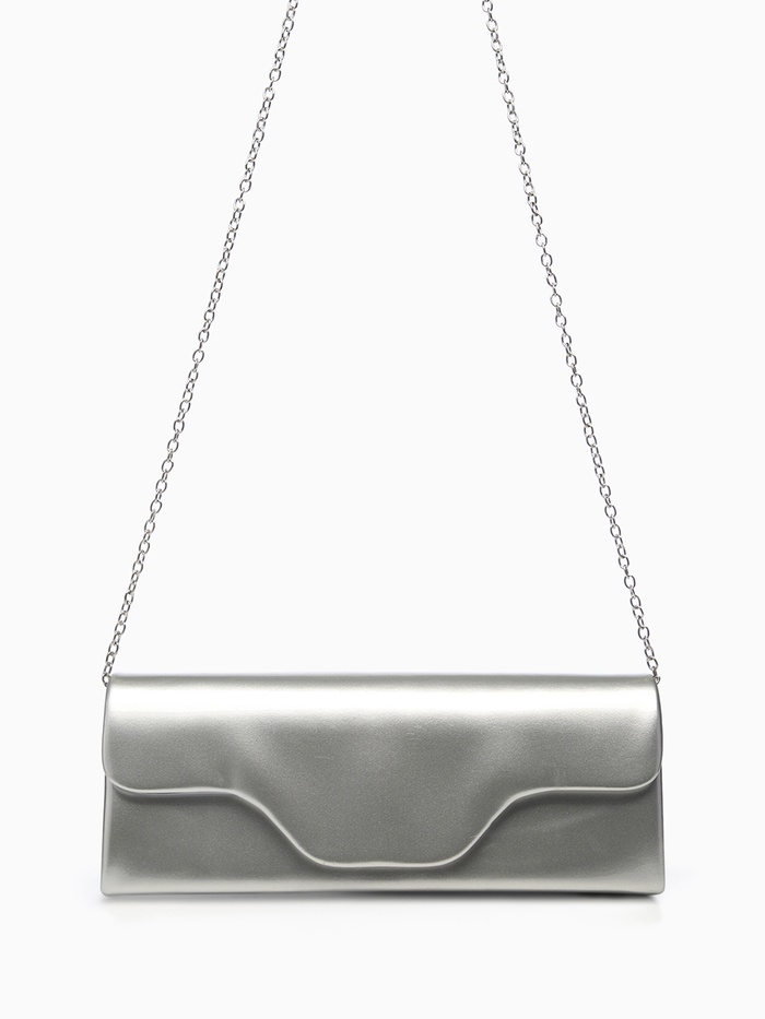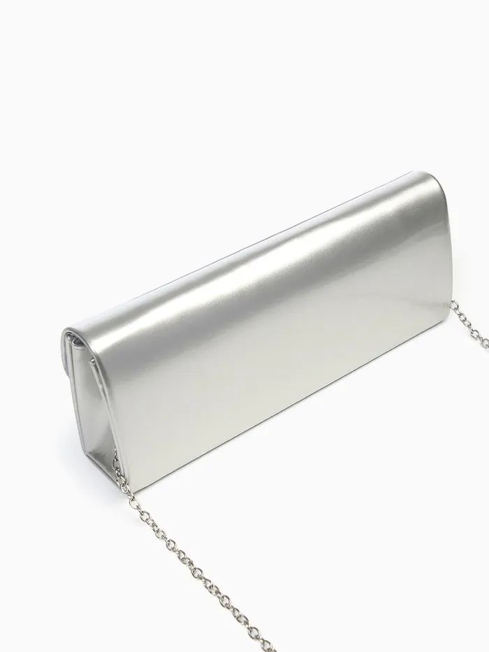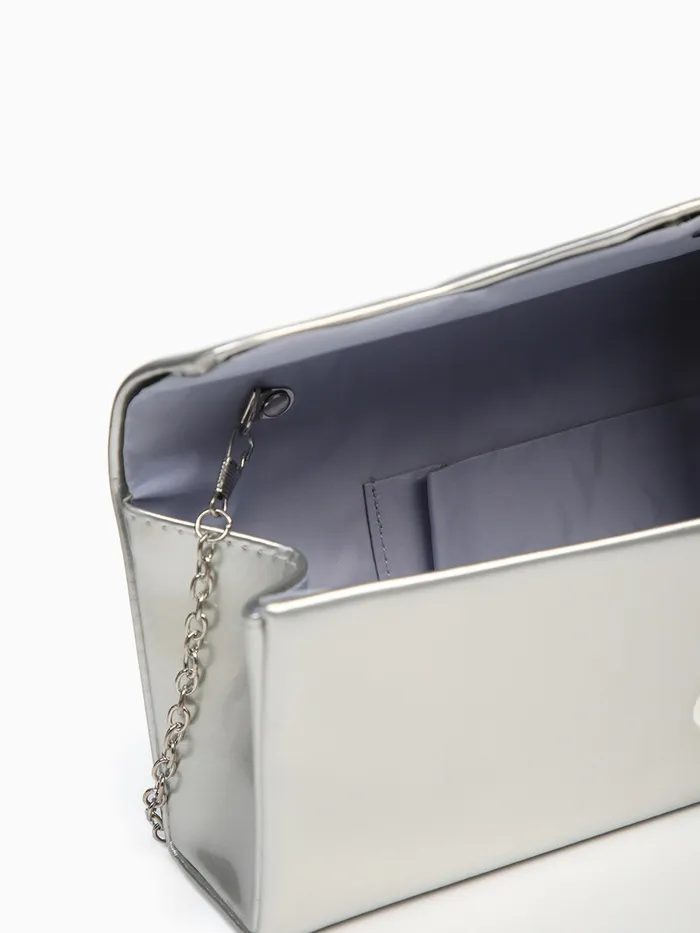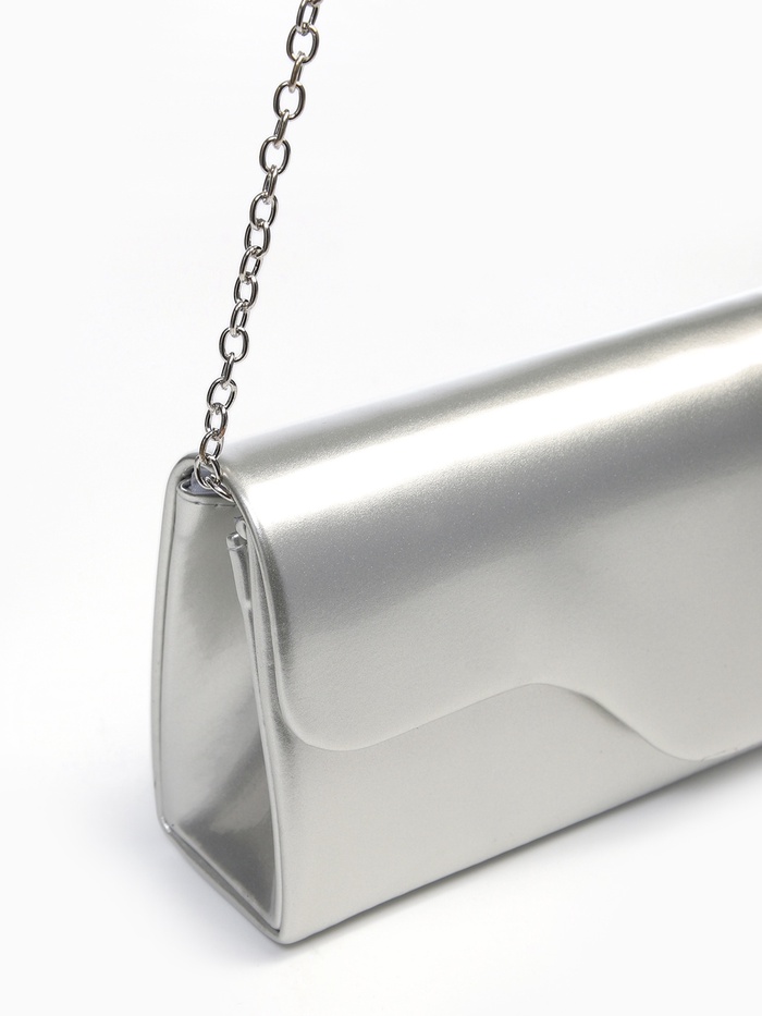 Сумка-клатч женская вечерняя на магните, на длинной цепочке, лаковая, однотонная, серебристая — Характеристики