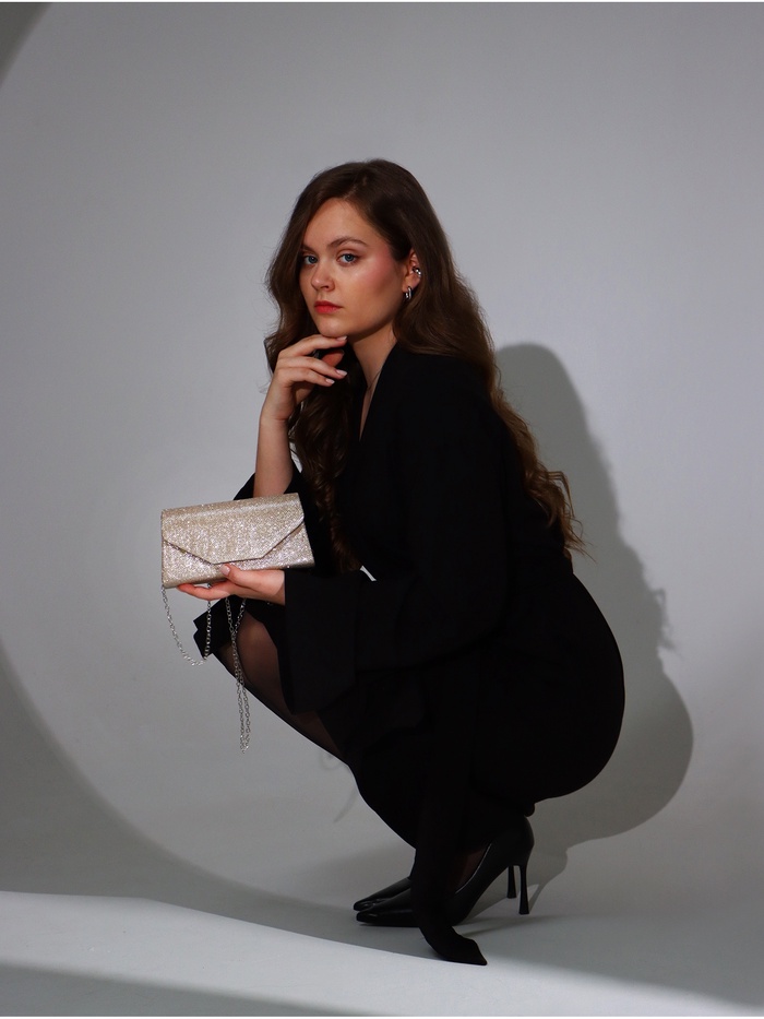 Изысканный аксессуар для стильных выходов! Изящный клатч с магнитной застежкой и длинной цепочкой – это идеальный выбор для любого праздника, особенно для яркого Новогоднего вечера. Этот аксессуар не только дополняет образ, но и придает ему законченность и шарм.