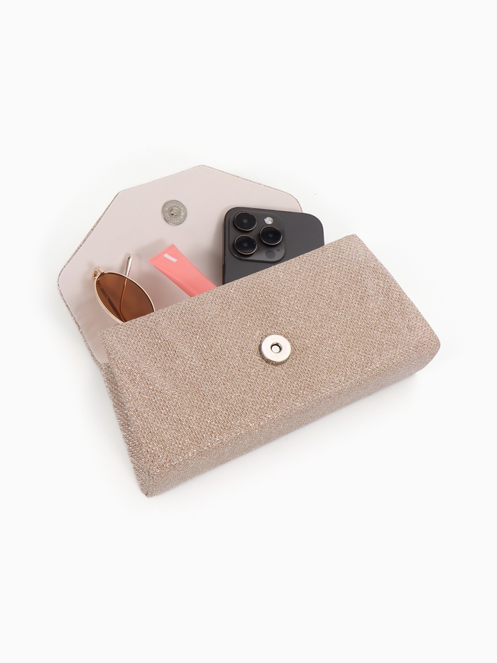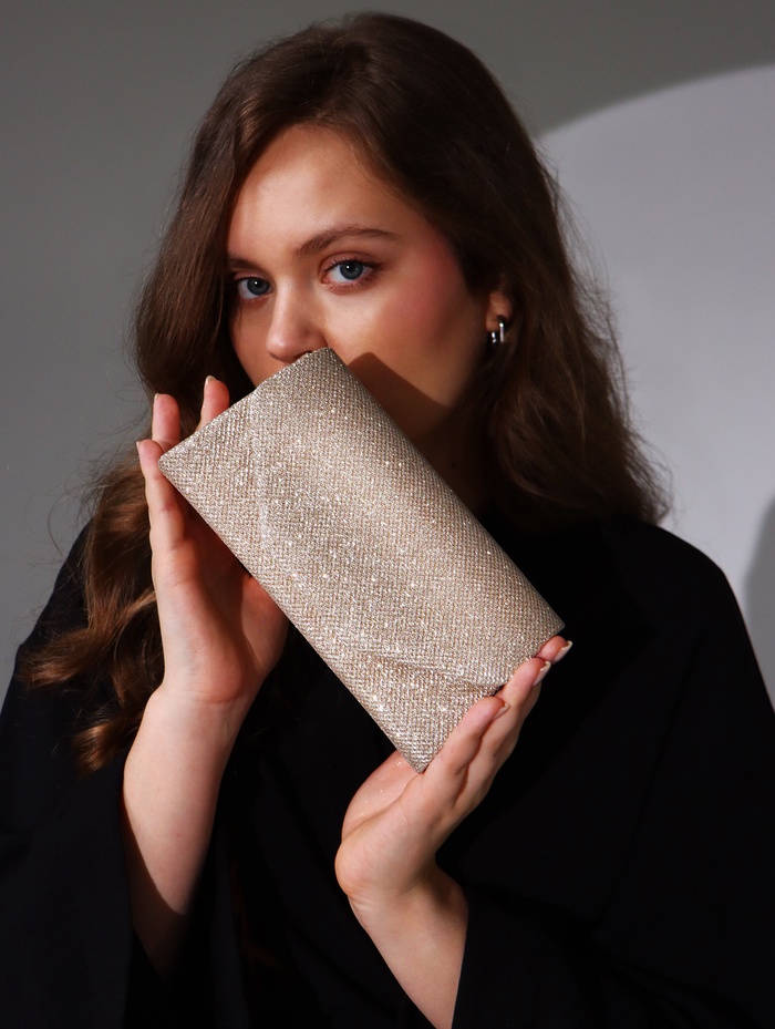 - Элегантный дизайн: Золотистый цвет в сочетании с серебряной фурнитурой создает уникальное сочетание, подходящее для разных сезонов и случаев. Размеры клатча легко позволяют разместить в нем все необходимое, сохраняя при этом его изящность и компактность.