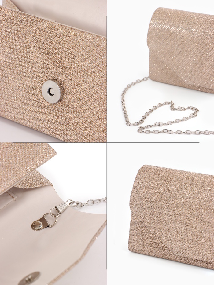 Сумка-клатч женская вечерняя на магните, на длинной цепочке, мерцающая, золотистая — Характеристики