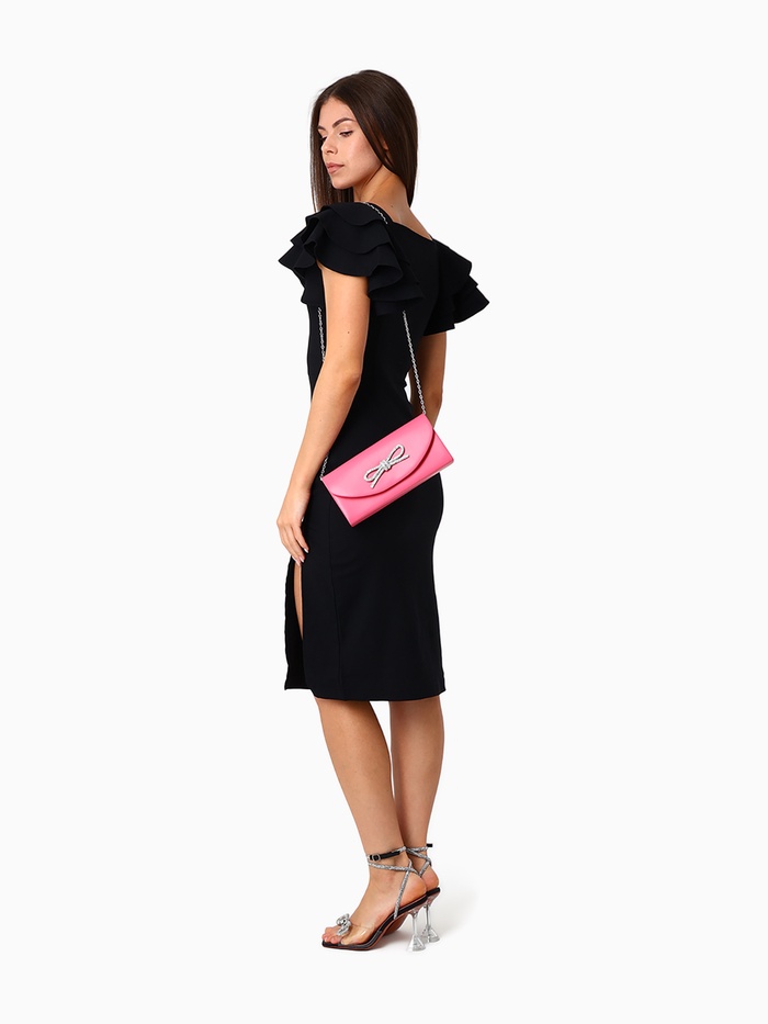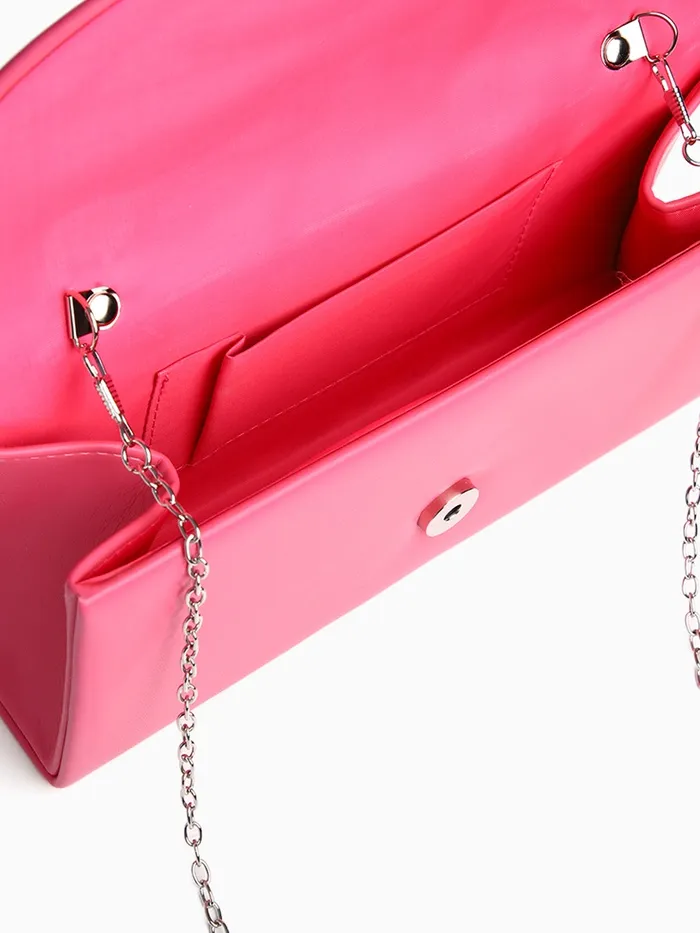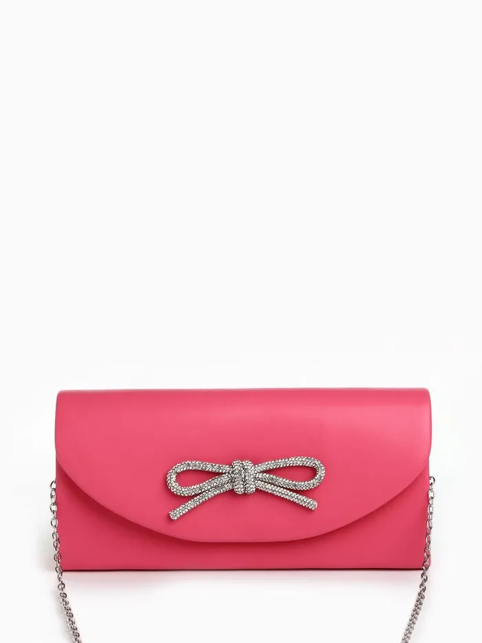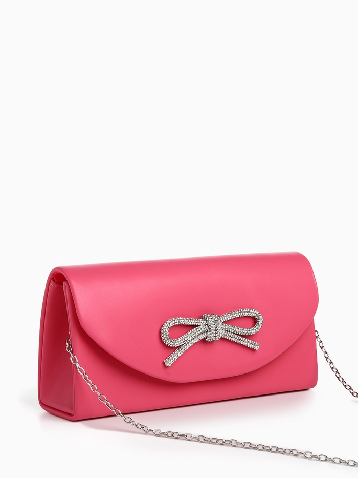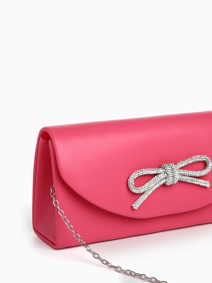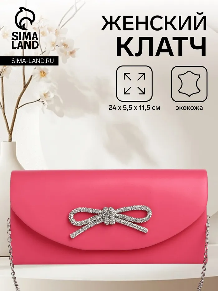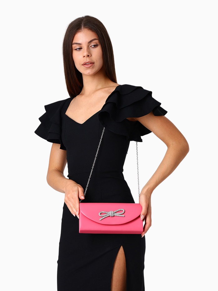 Сумка-клатч женская вечерняя на магните, на длинной цепочке, с декоративным бантом, розовая — Характеристики