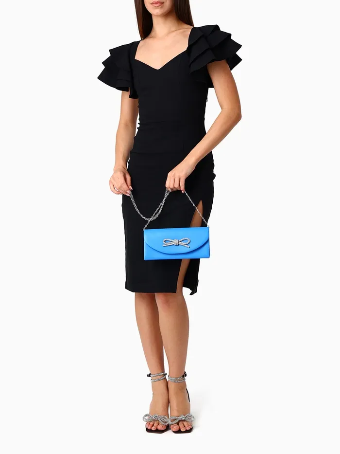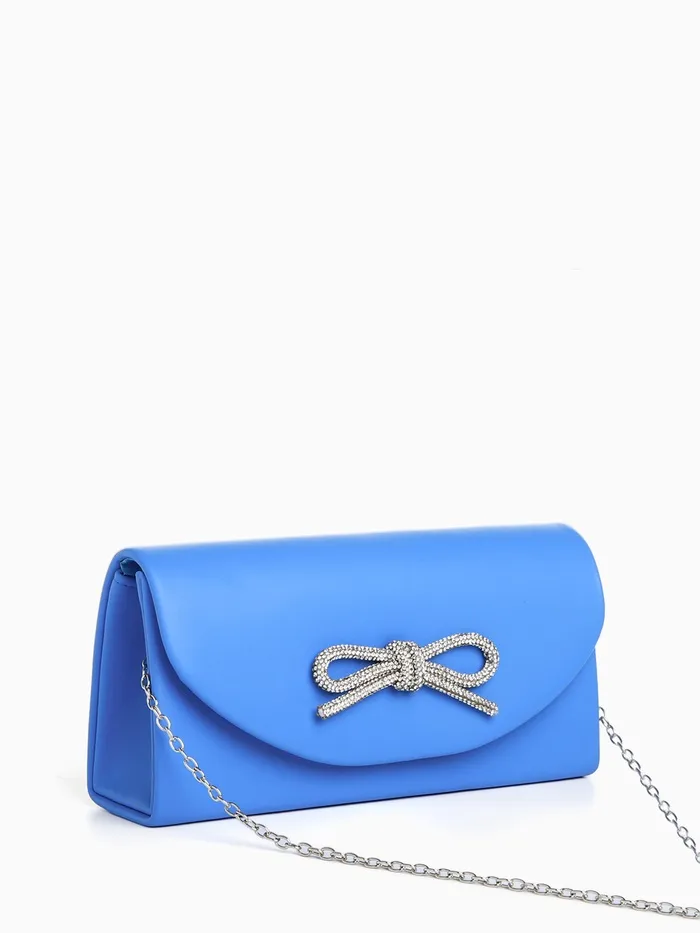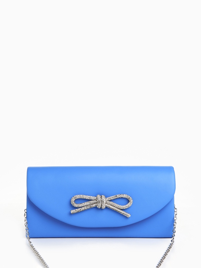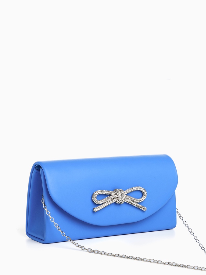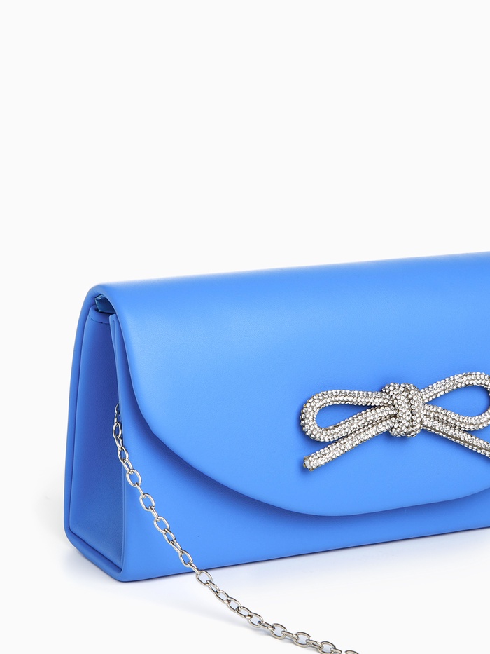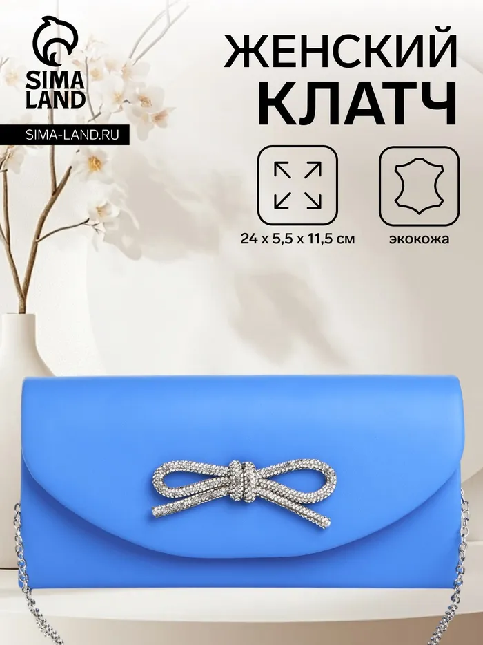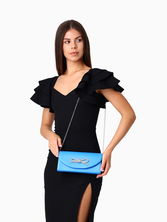 Сумка-клатч женская вечерняя на магните, на длинной цепочке, с декоративным бантом, синяя — Характеристики