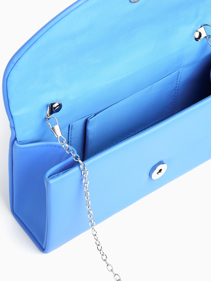 - Элегантные детали: Однотонный синий цвет сумки гармонично сочетается с серебряной фурнитурой. Жёсткий каркас обеспечивает сохранность формы, а стильное исполнение подчеркнёт вашу изысканность.