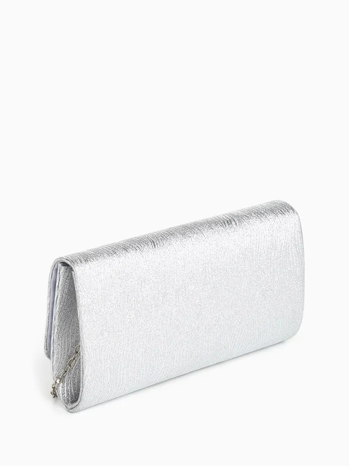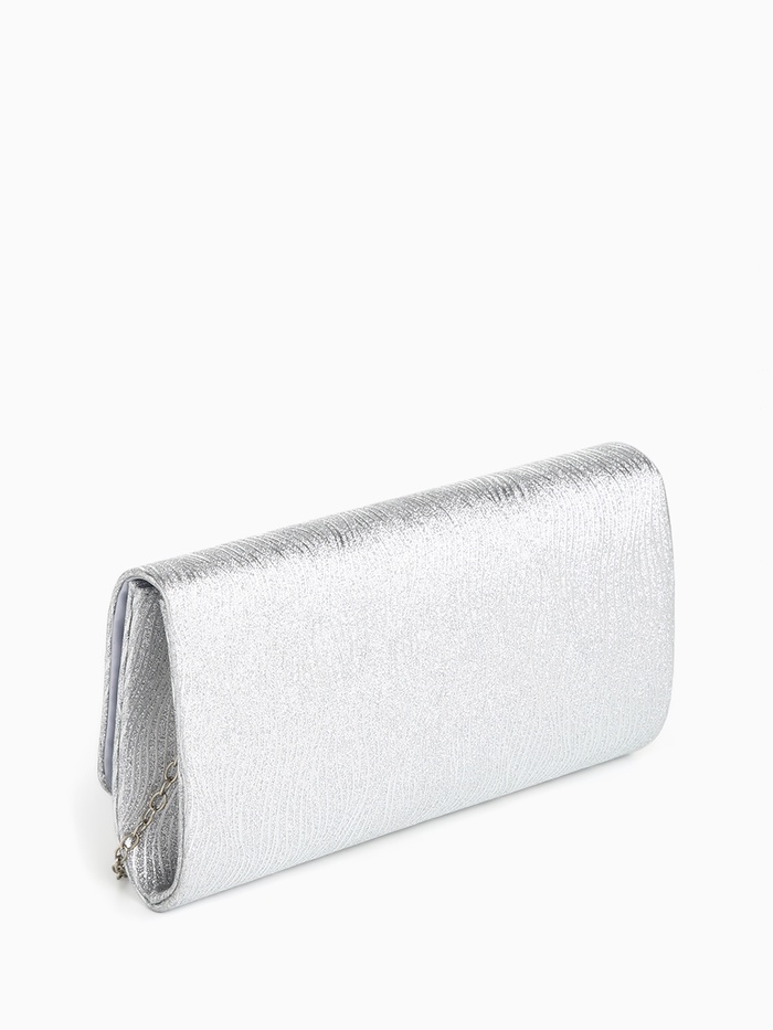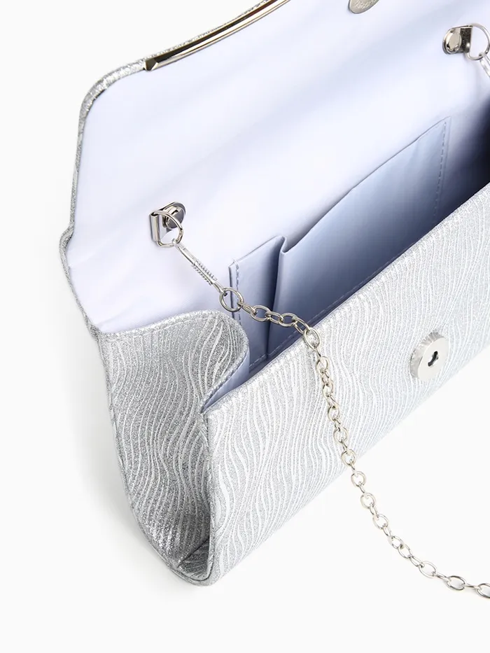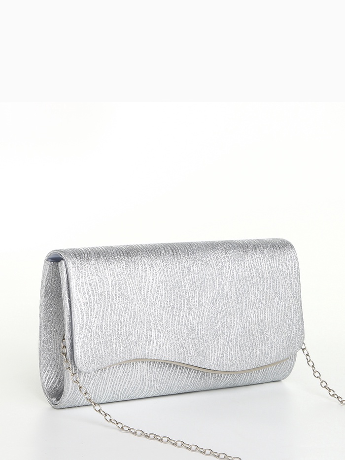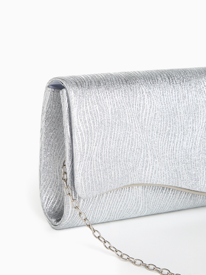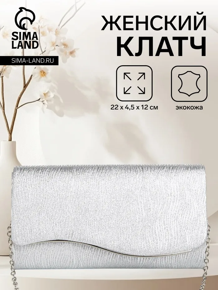 Сумка-клатч женская вечерняя на магните, на длинной цепочке, серебристая — Характеристики