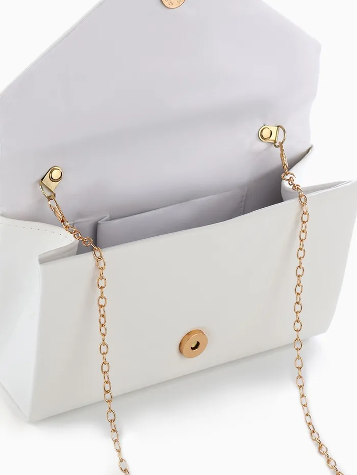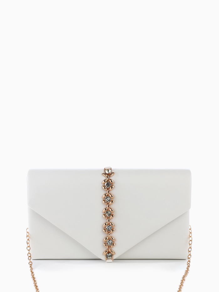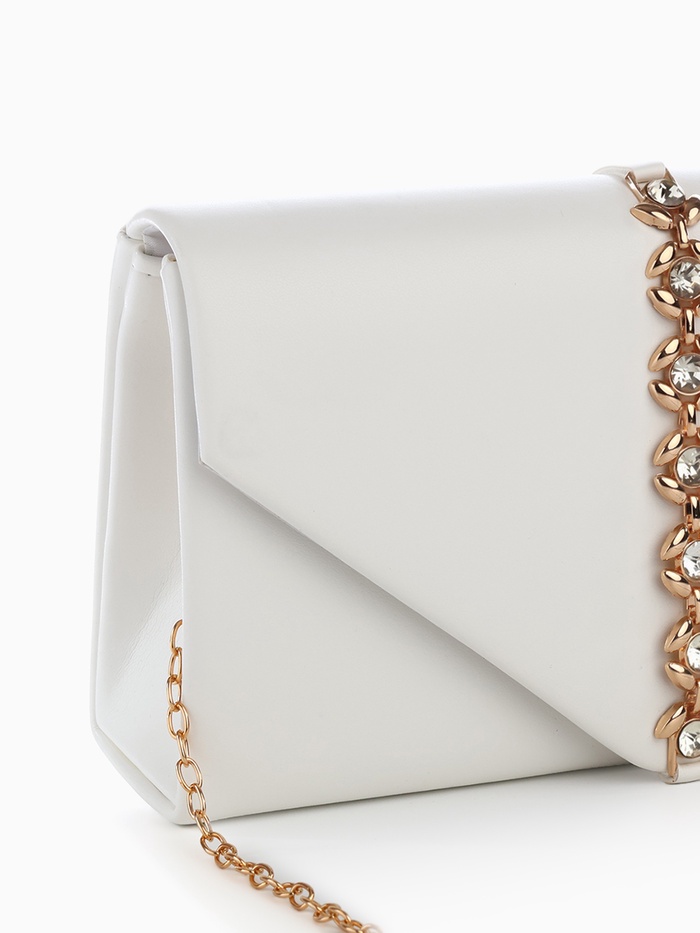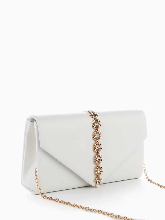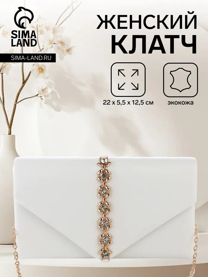 Сумка-клатч женская вечерняя на магните, на длинной цепочке, со стразами, белая — Характеристики
