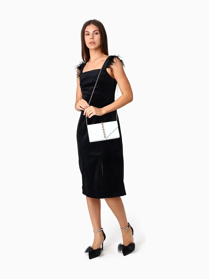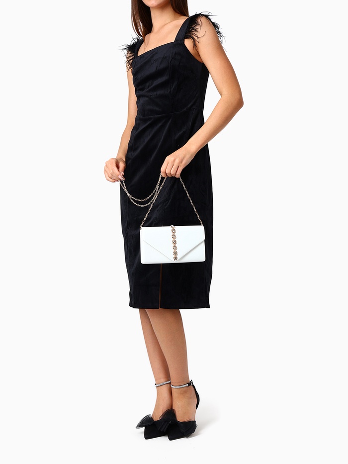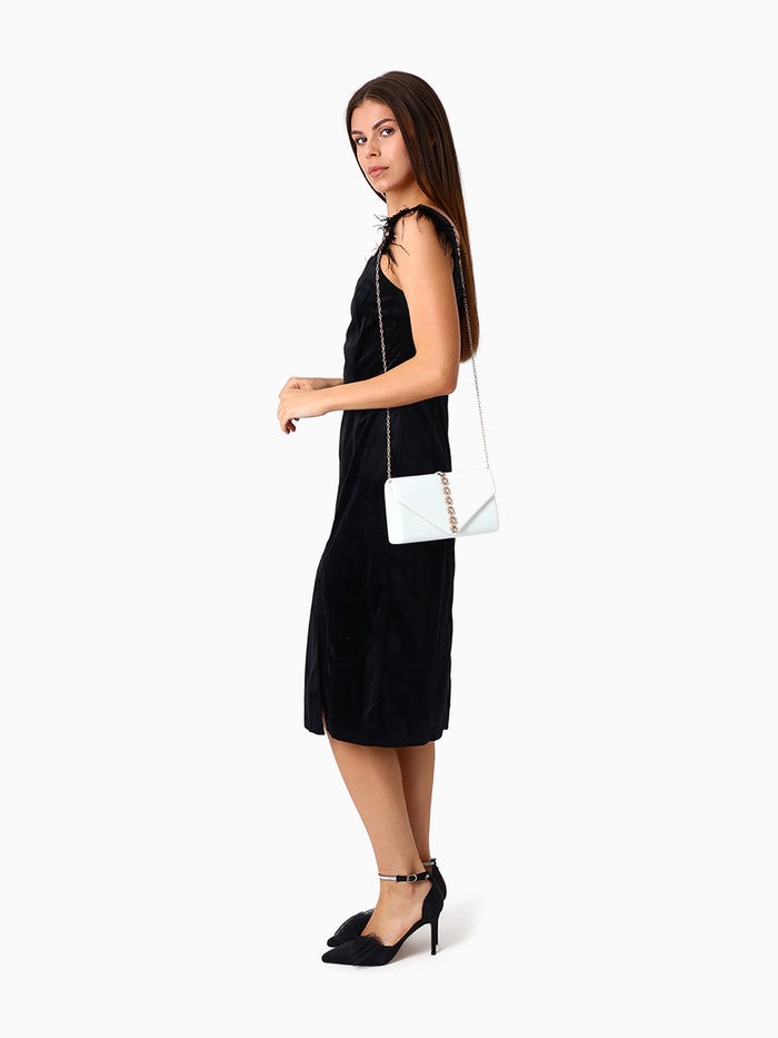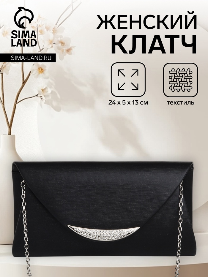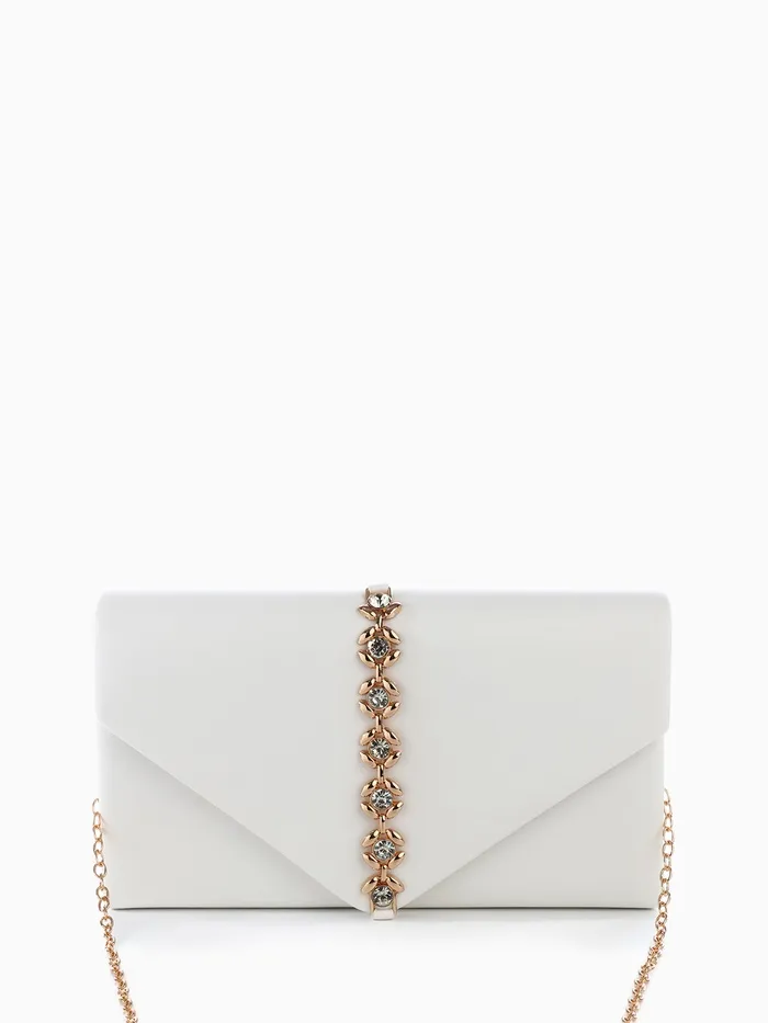 Сумка-клатч женская вечерняя на магните, на длинной цепочке, со стразами, белая — Характеристики