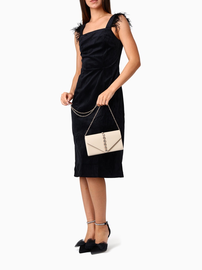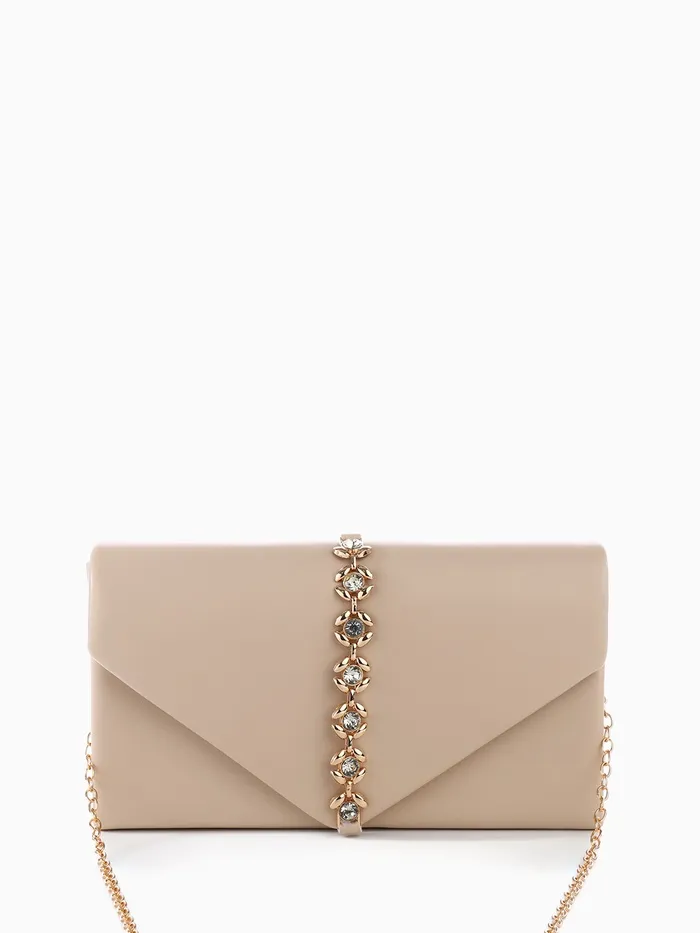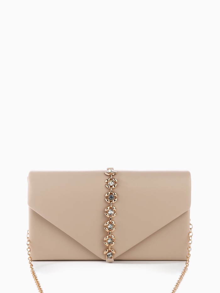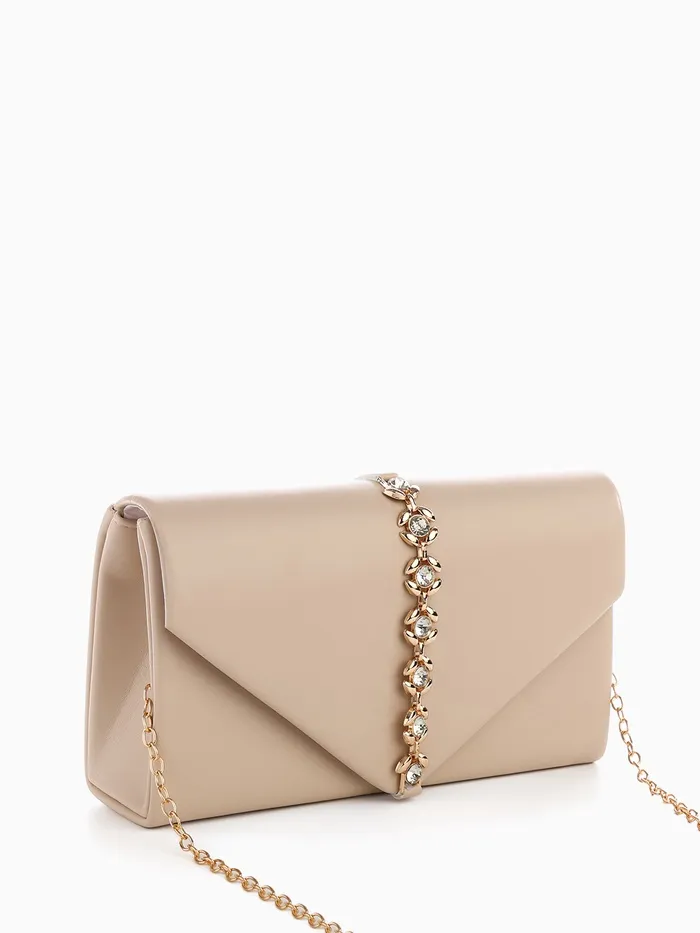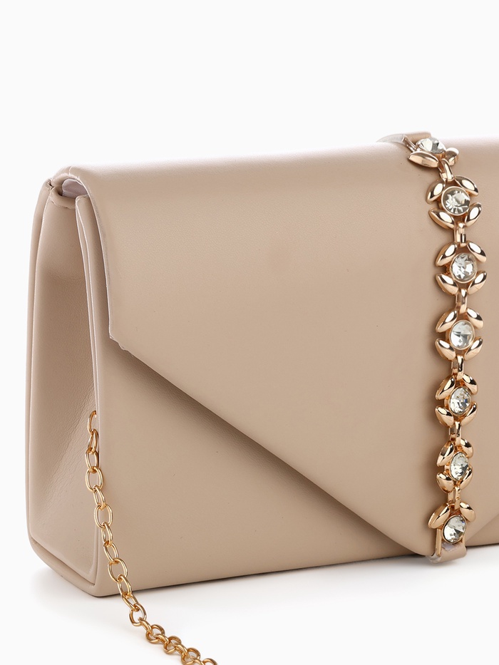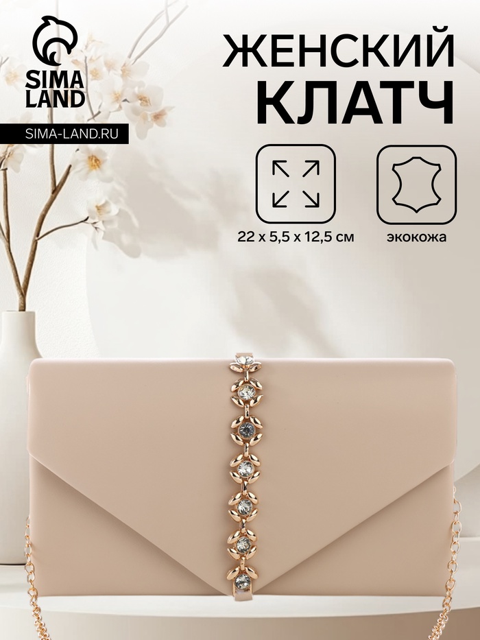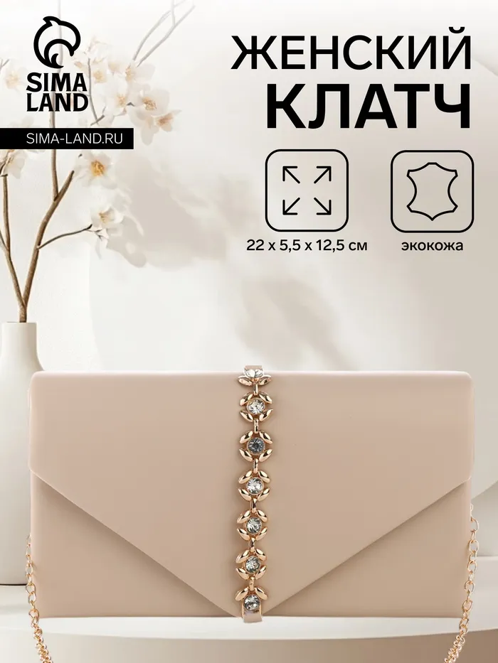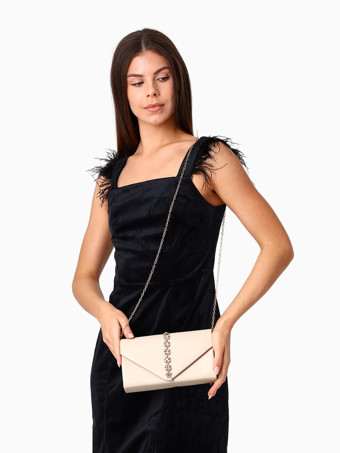 Сумка-клатч женская вечерняя на магните, на длинной цепочке, со стразами, бежевая — Характеристики