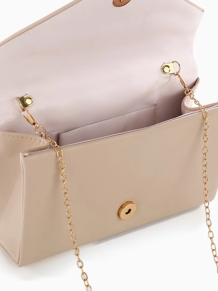 - Изысканный дизайн: Однотонное бежевое исполнение из искусственной кожи прекрасно сочетается с золотистой фурнитурой, добавляя нотки роскоши. Твердая конструкция сумки обеспечит сохранность ваших вещей, а магнитная застежка гарантирует легкий доступ к содержимому.