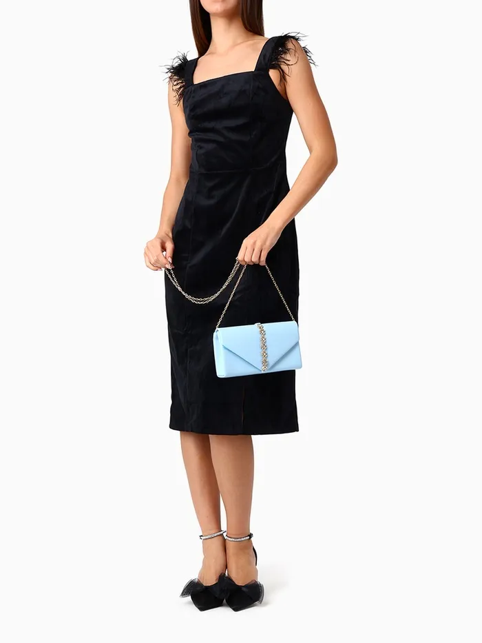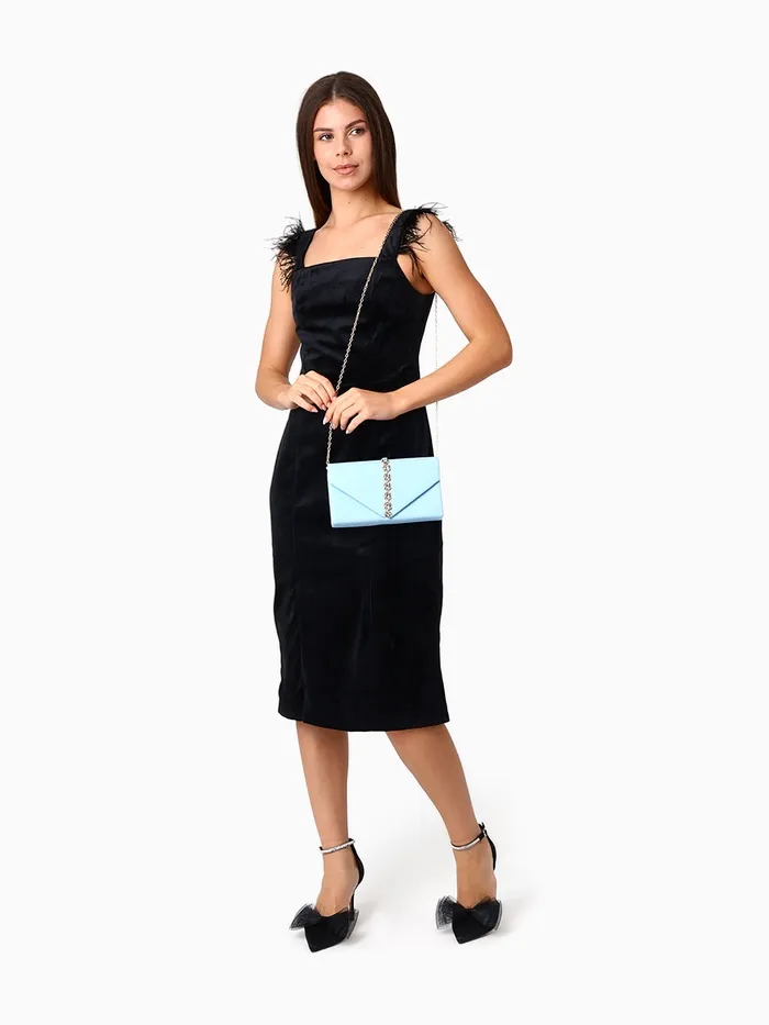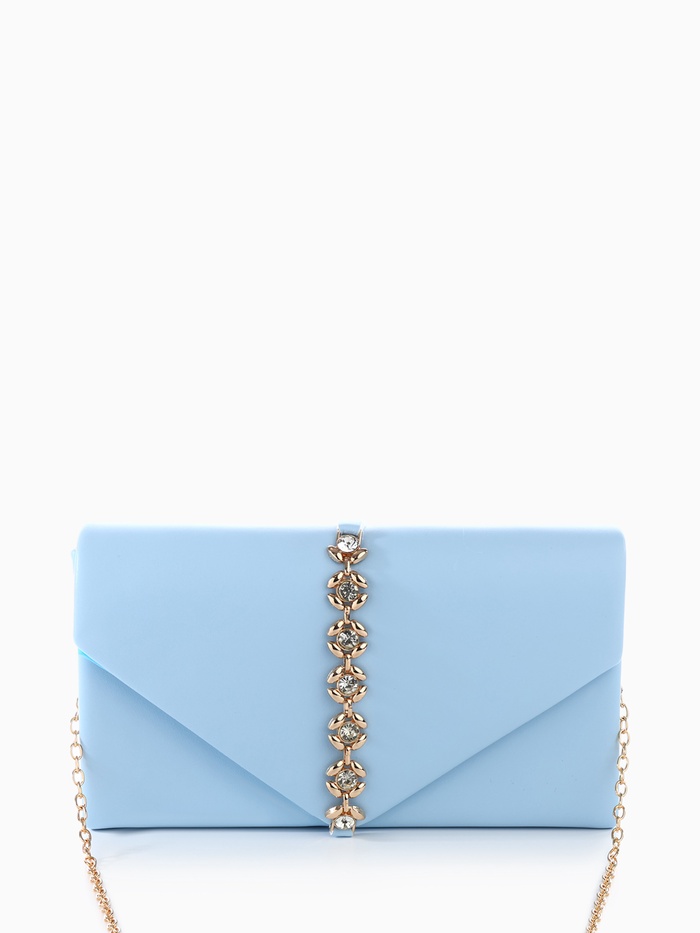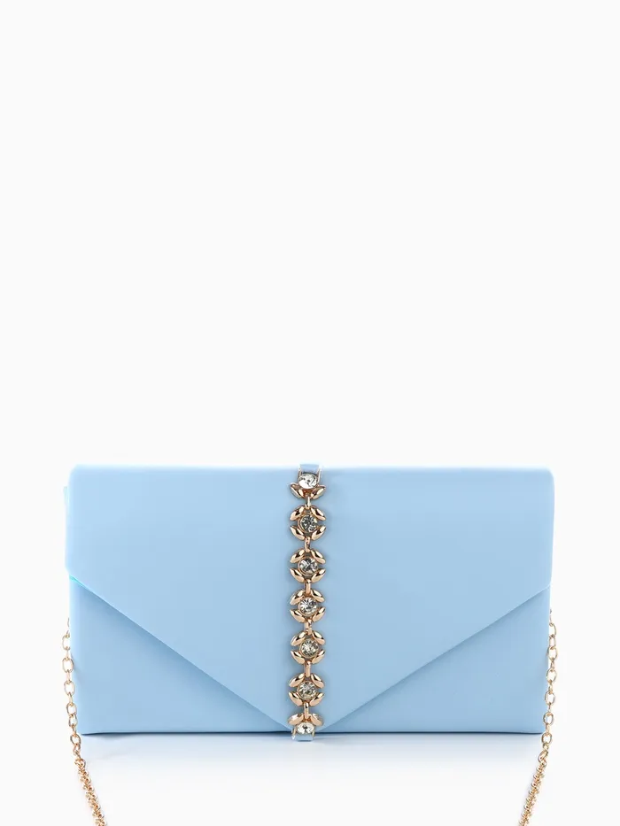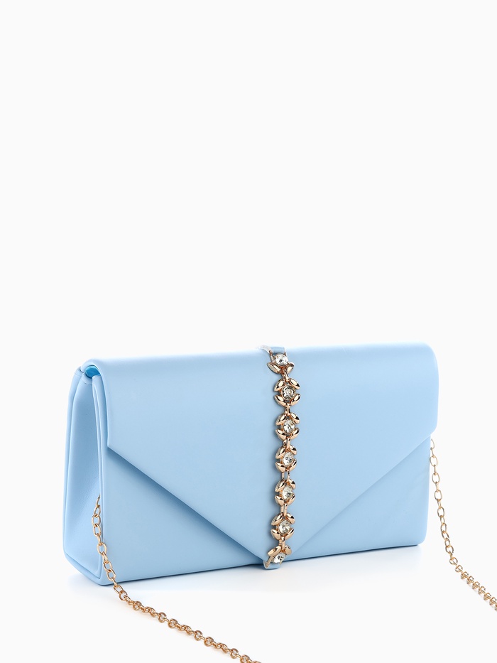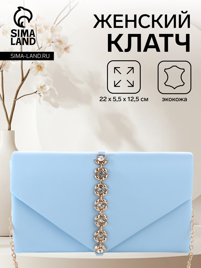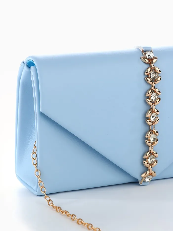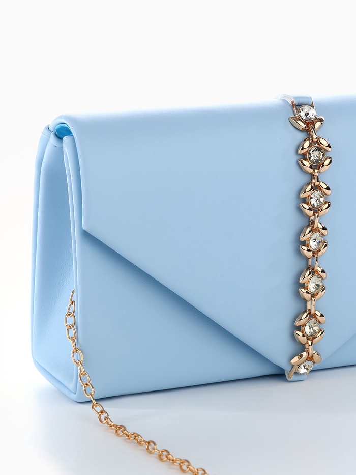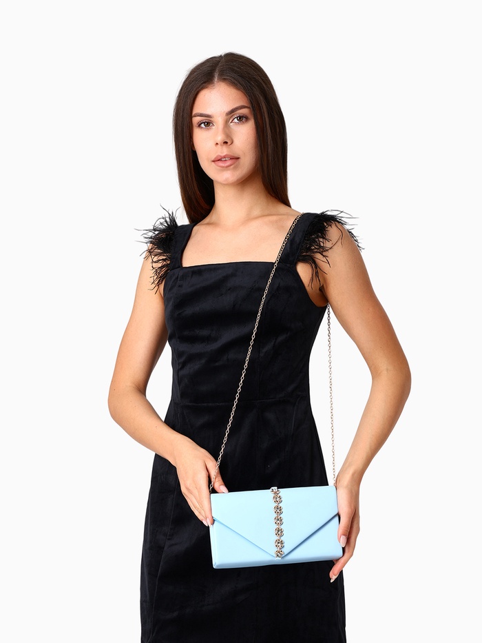 Сумка-клатч женская вечерняя на магните, на длинной цепочке, со стразами, голубая — Характеристики