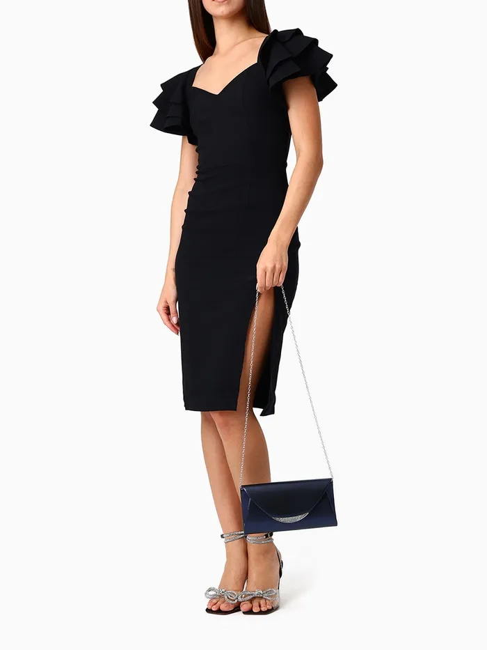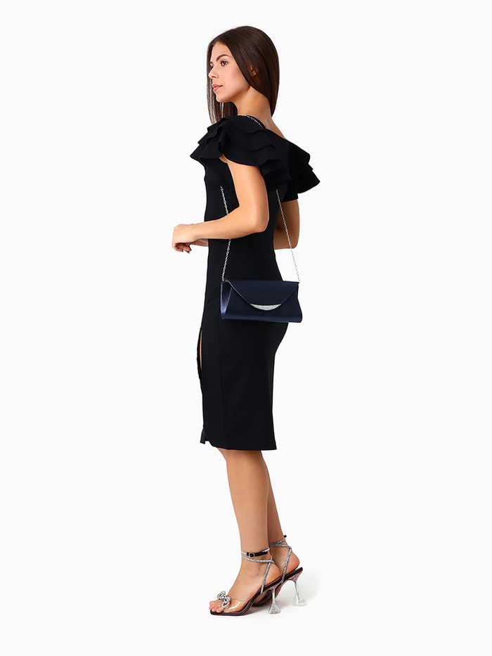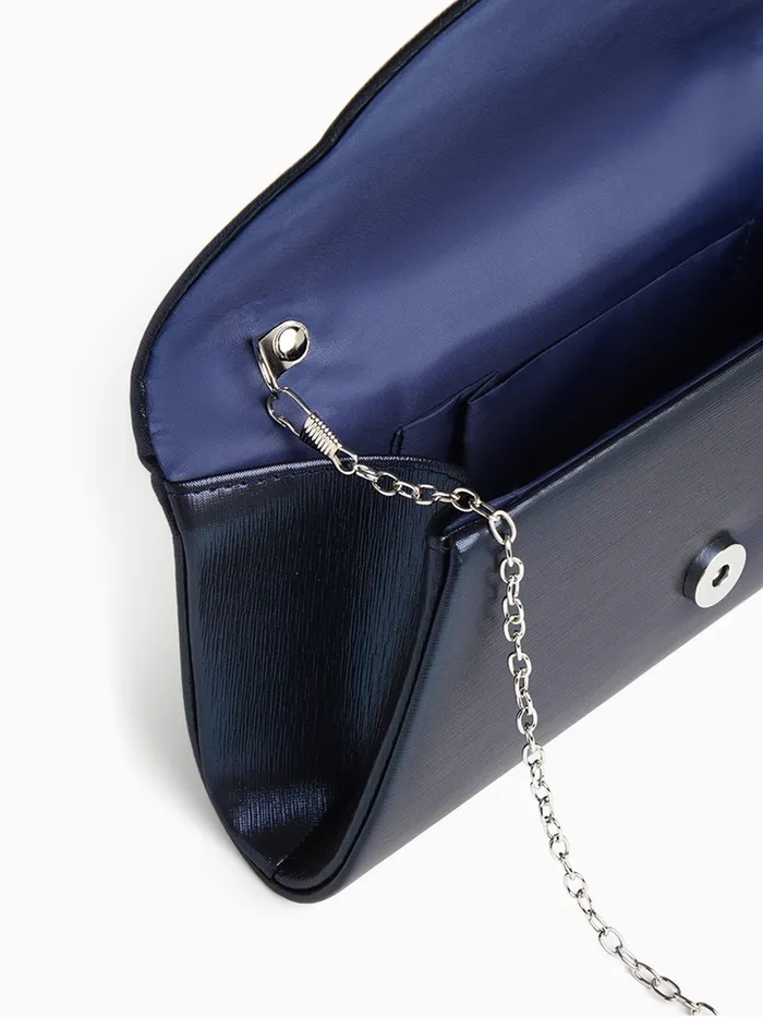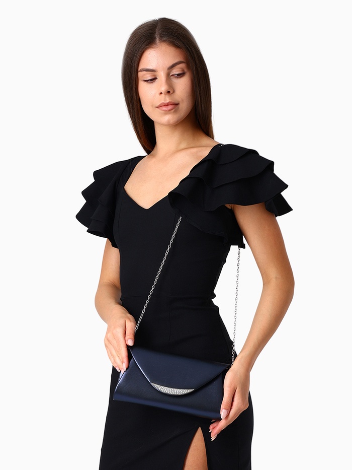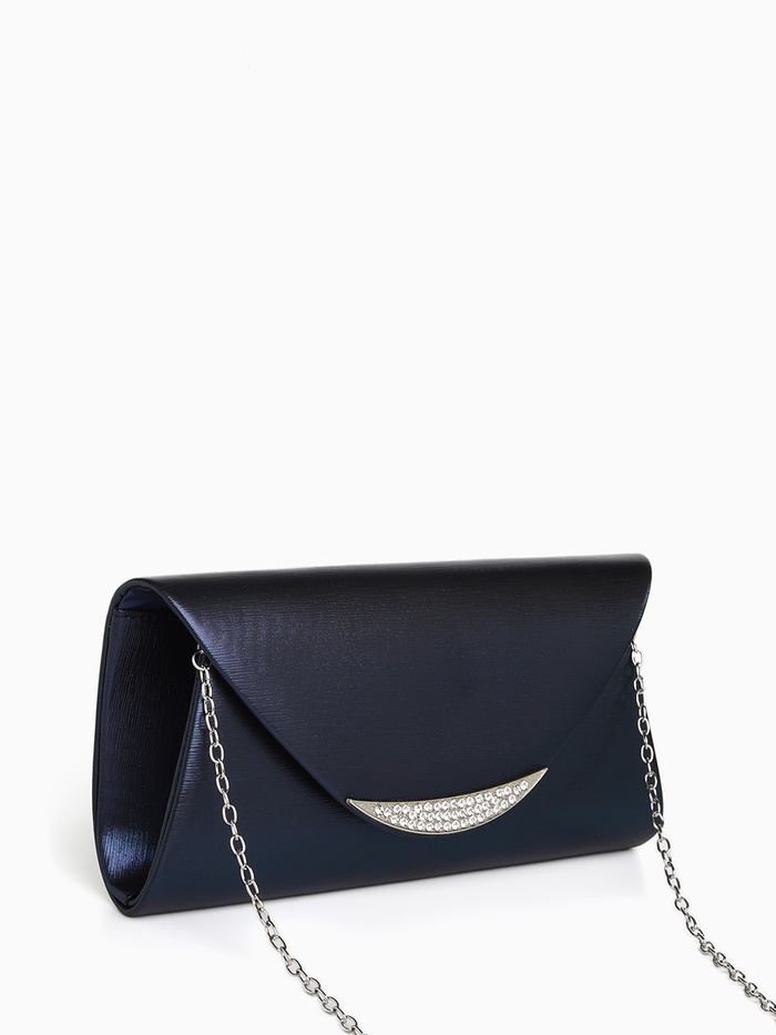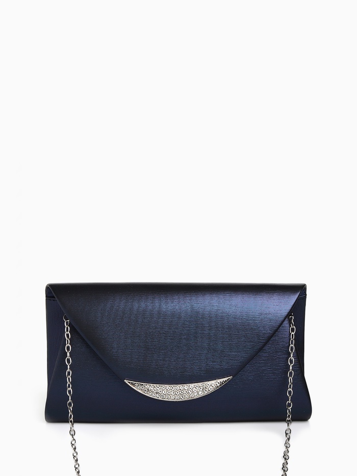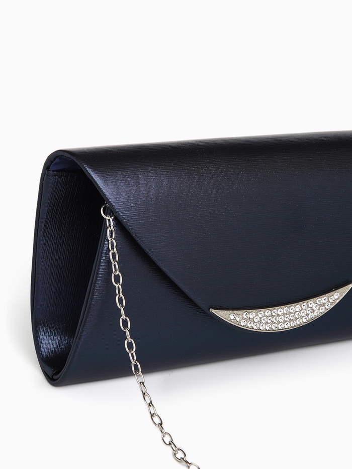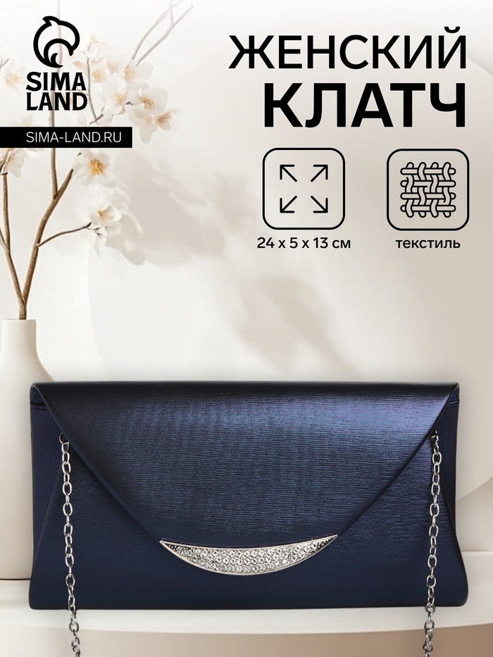 Сумка-клатч женская вечерняя на магните, на длинной цепочке, со стразами, мерцающая, тёмно-синяя — Характеристики