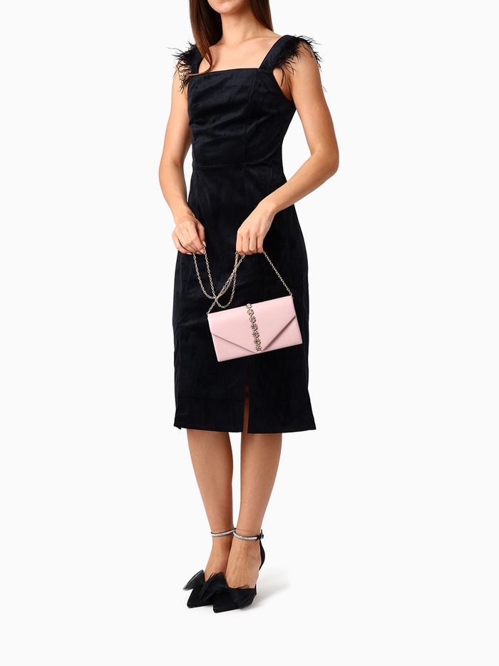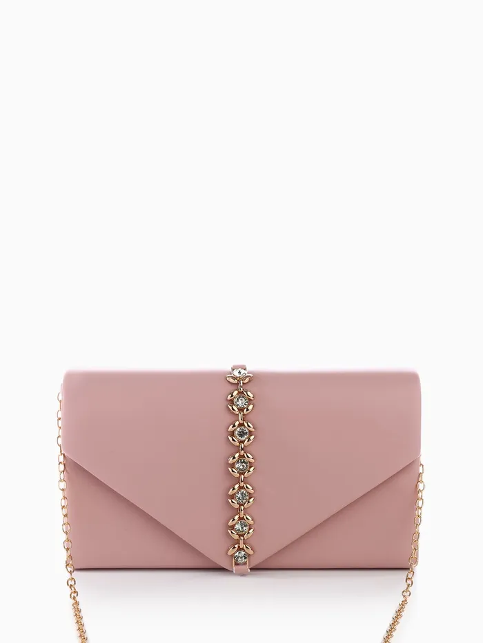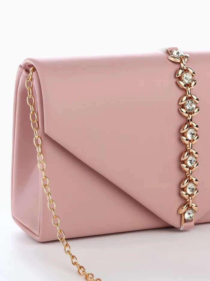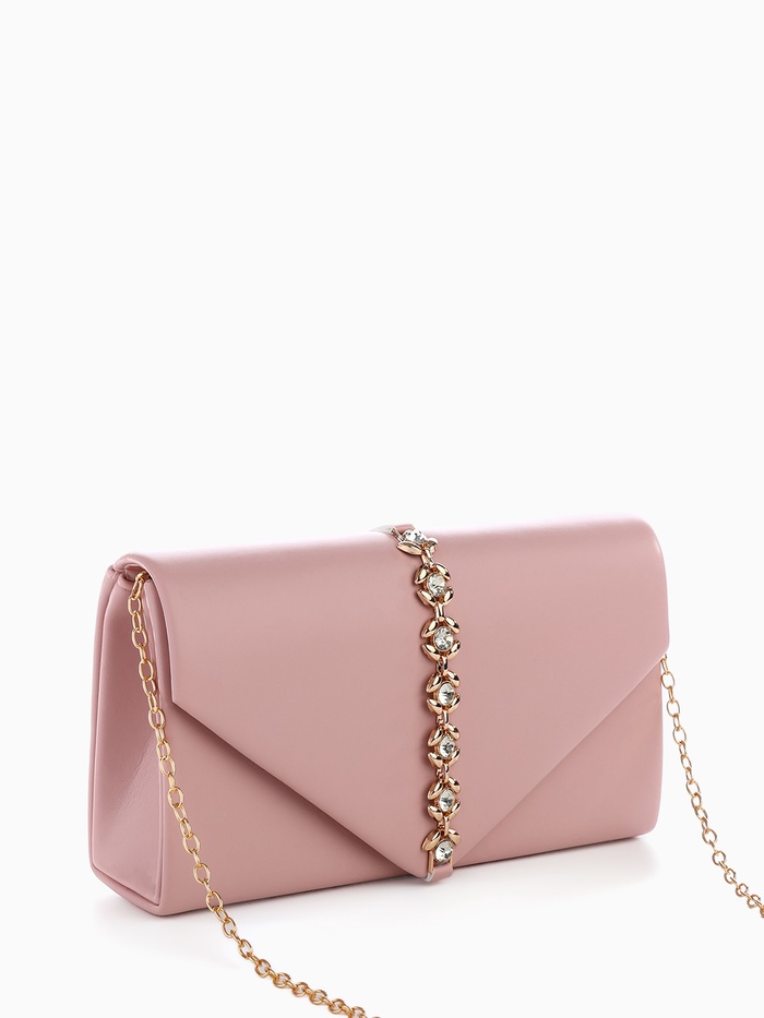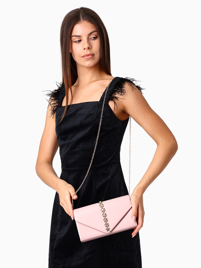 Сумка-клатч женская вечерняя на магните, на длинной цепочке, со стразами, розовая — Характеристики