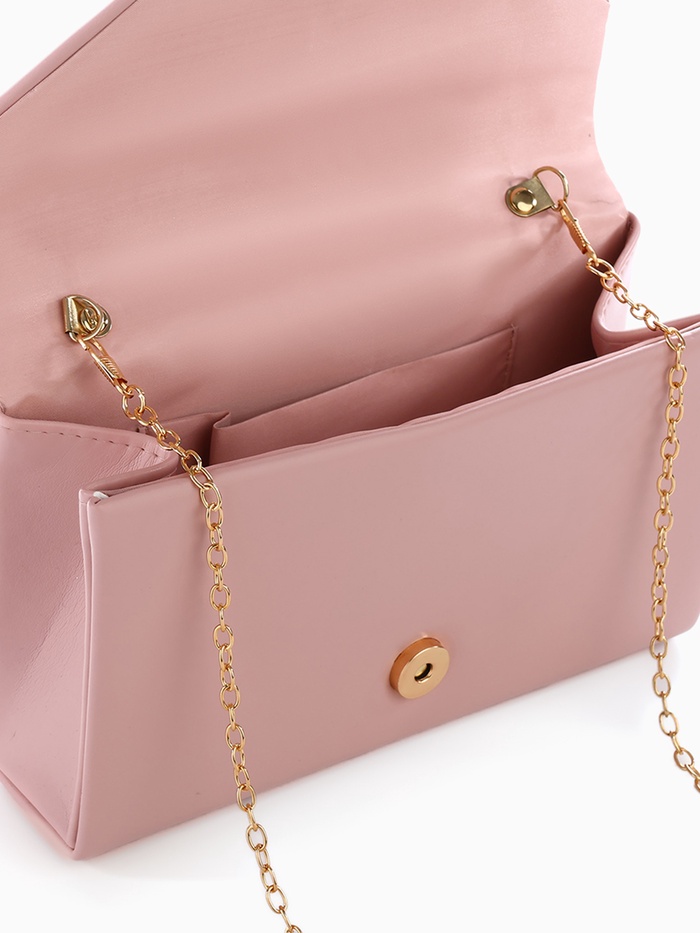 - Стильный розовый дизайн: Эта однотонная сумка выделяется своим пастельно-розовым цветом, который приносит легкость и свежесть в ваш образ. Золотая фурнитура добавляет изысканность.
