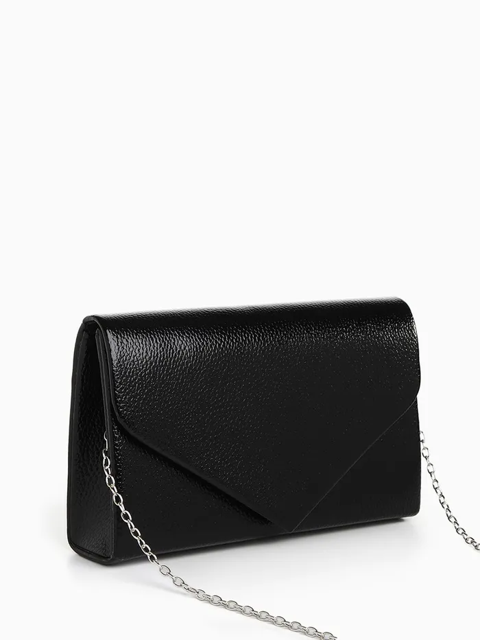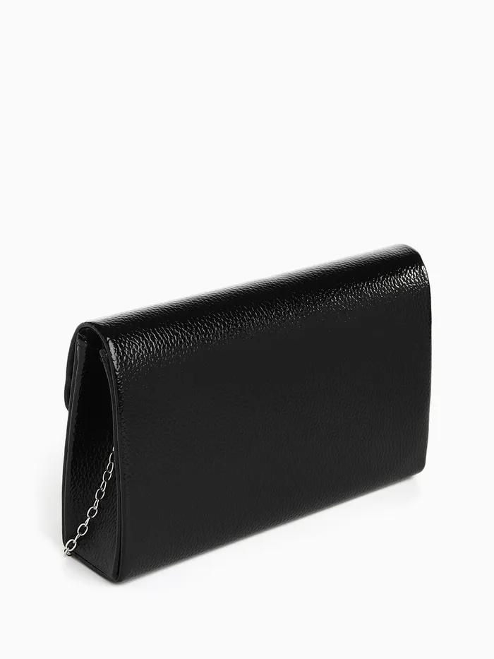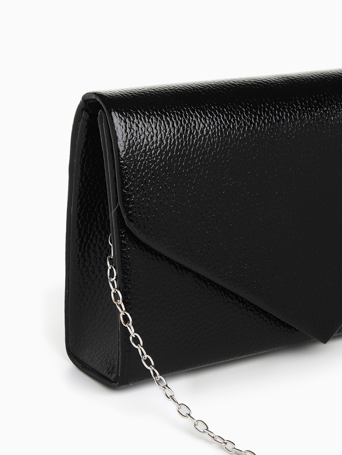 Сумка-клатч женская вечерняя на магните, на серебристой цепочке, чёрная