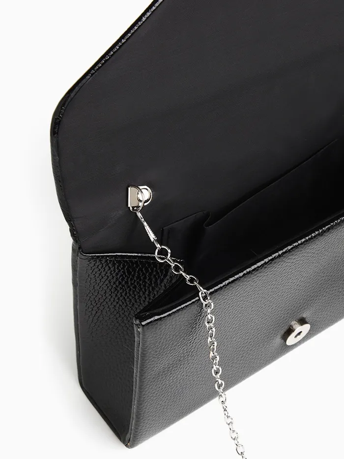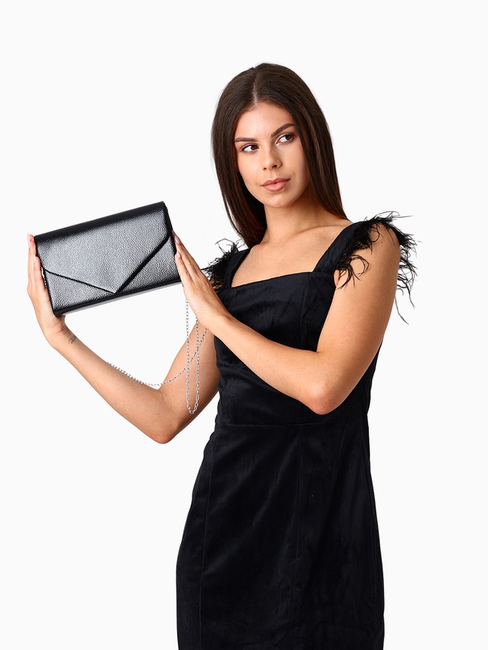 Сумка-клатч женская вечерняя на магните, на серебристой цепочке, чёрная — Характеристики