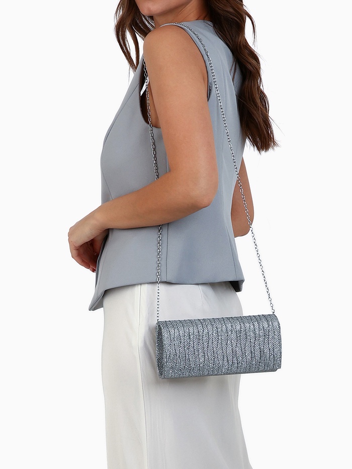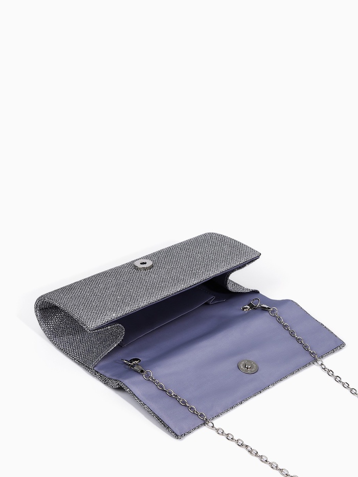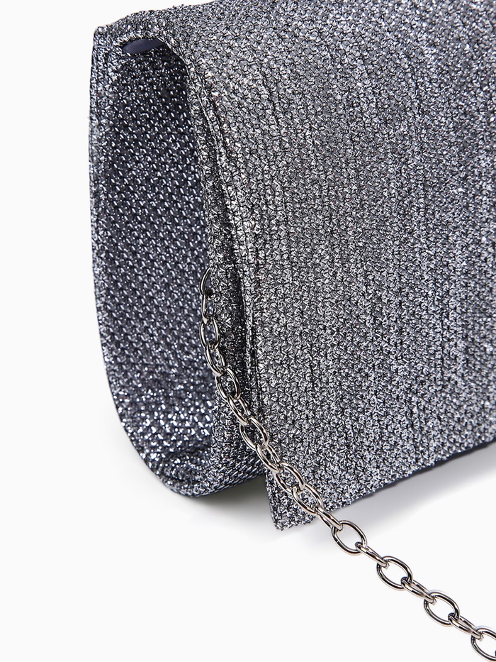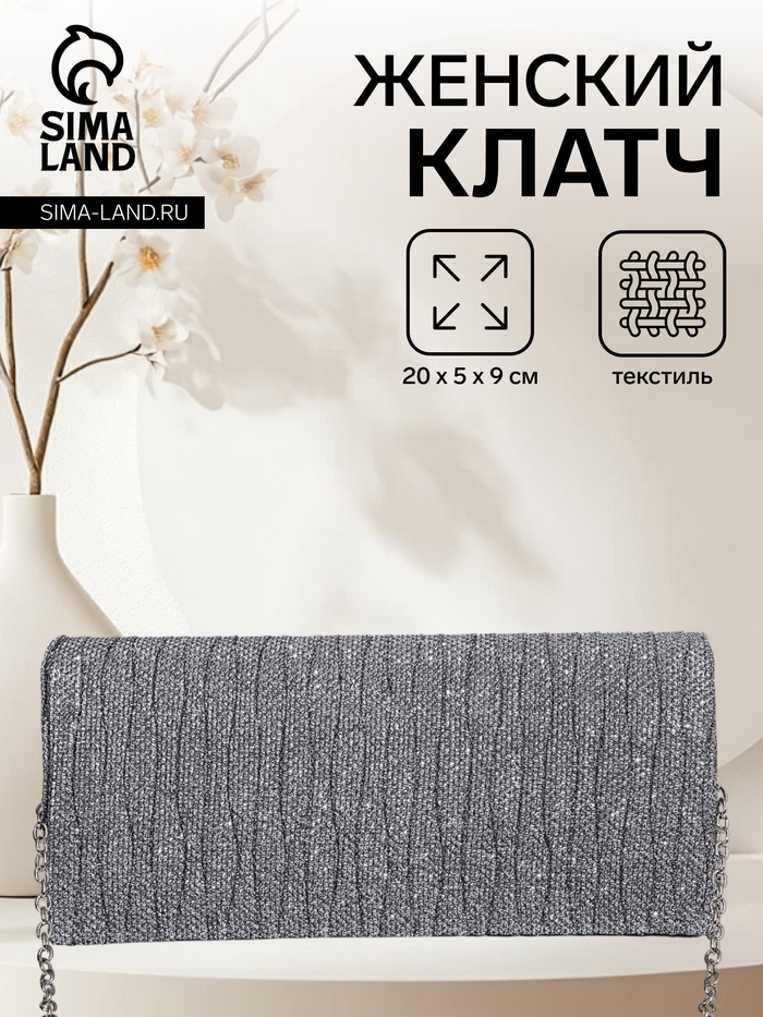 Сумка-клатч женская вечерняя на магните, на цепочке, блестящая, серебристая — Характеристики