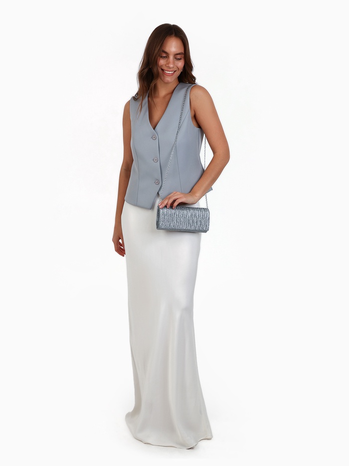 - Однотонная утонченность: Выполненная в серебристом цвете, она станет вашим акцентом на любом событии, предлагая идеальный баланс между практичностью и эстетикой.