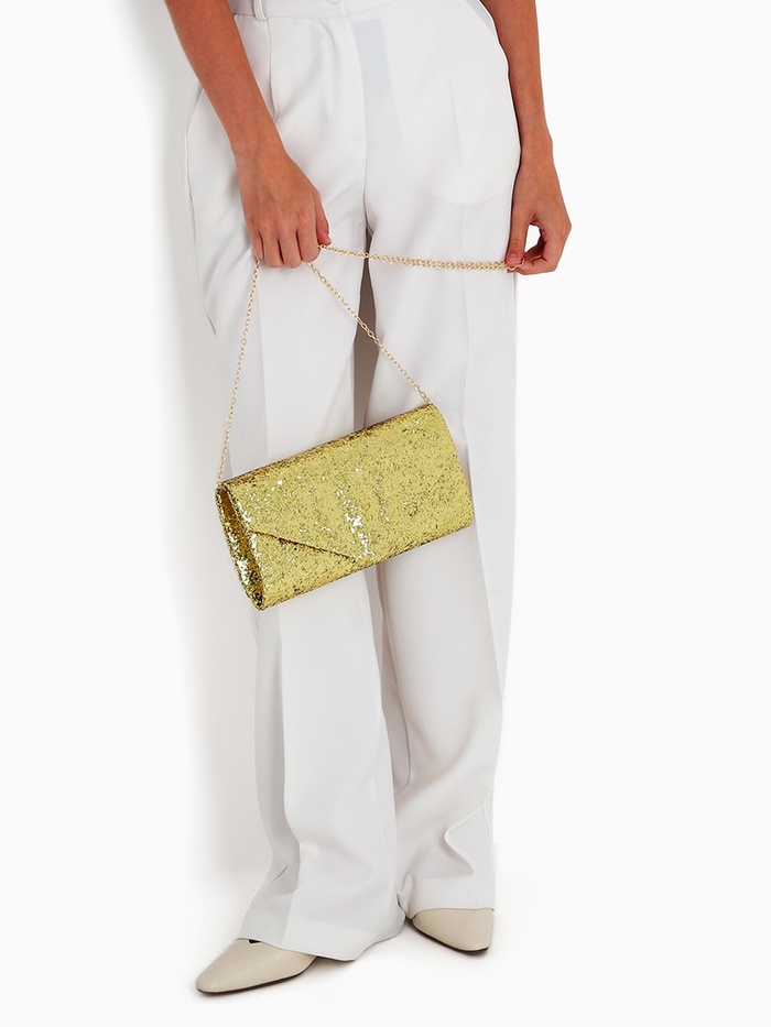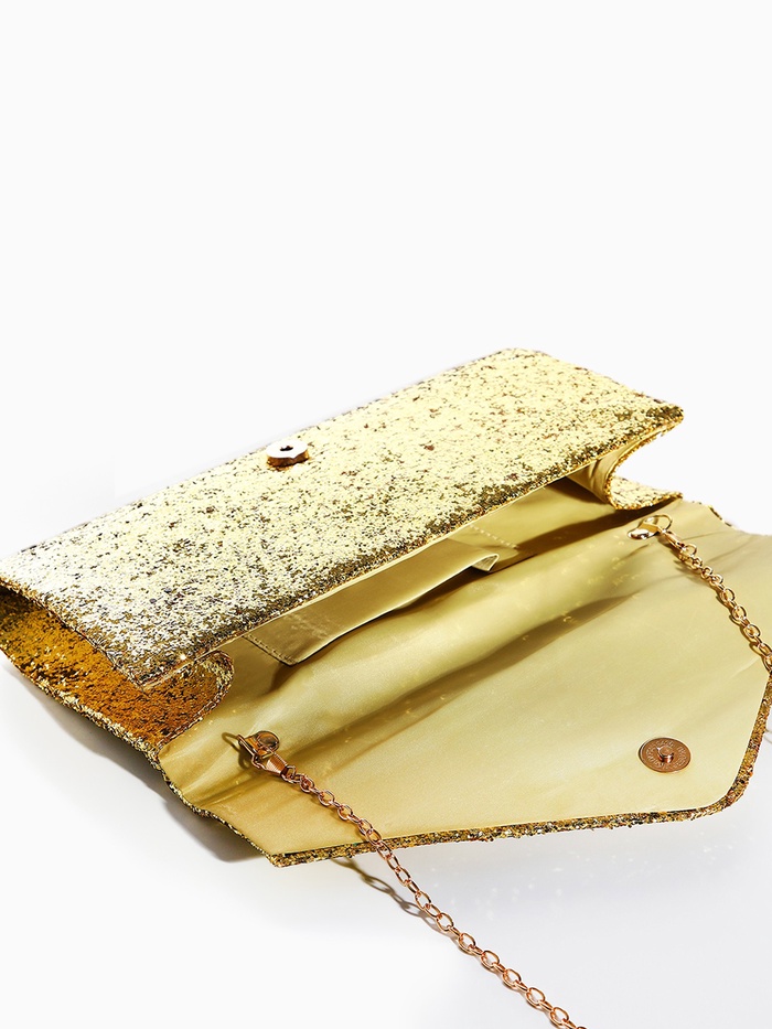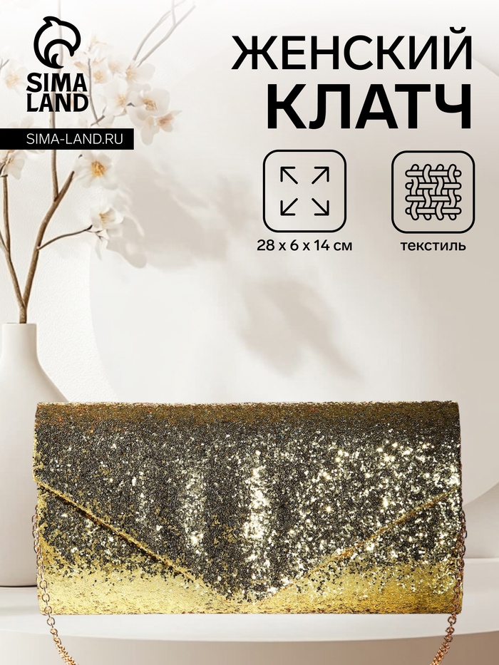 Сумка-клатч женская вечерняя на магните, на цепочке, блестящая, золотистая — Характеристики