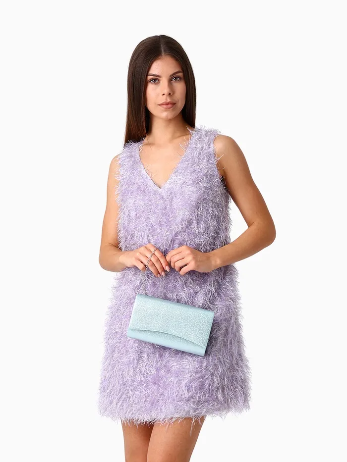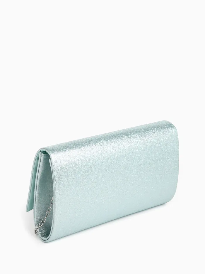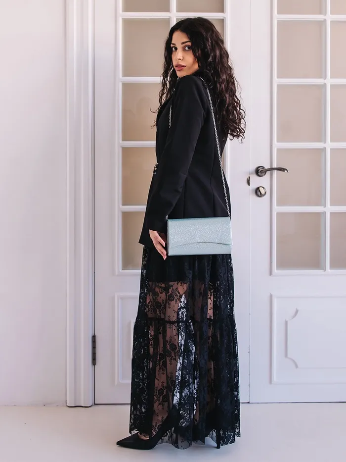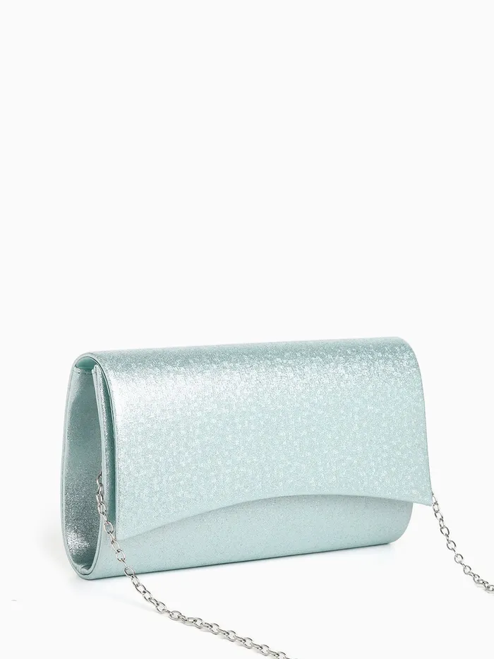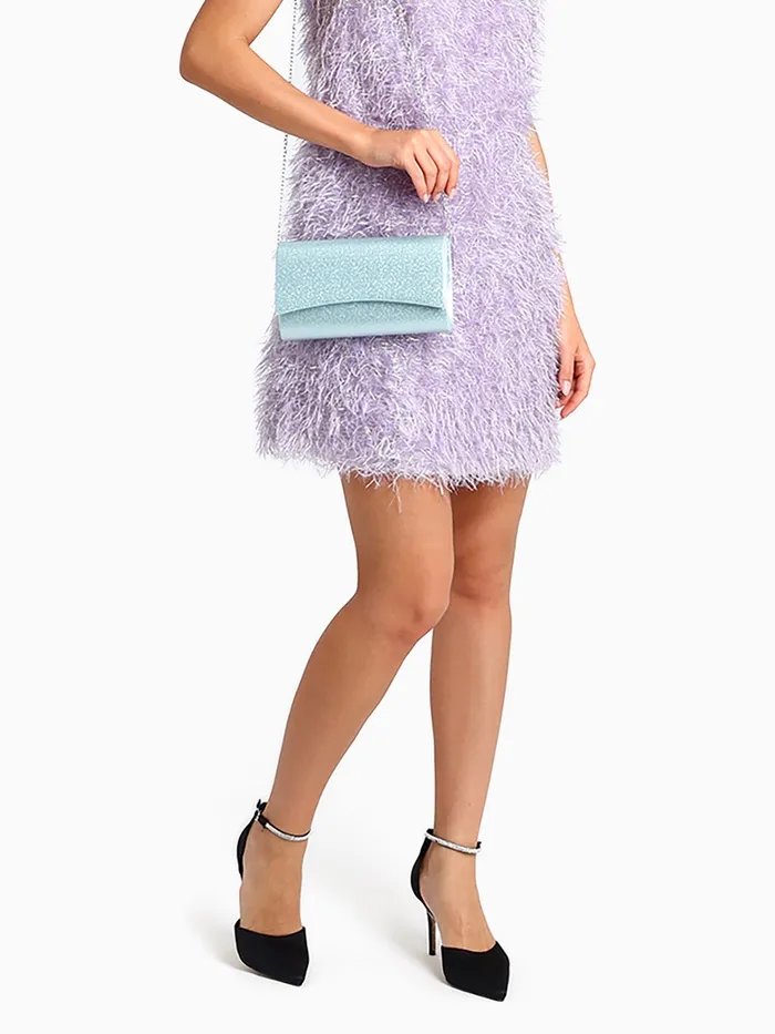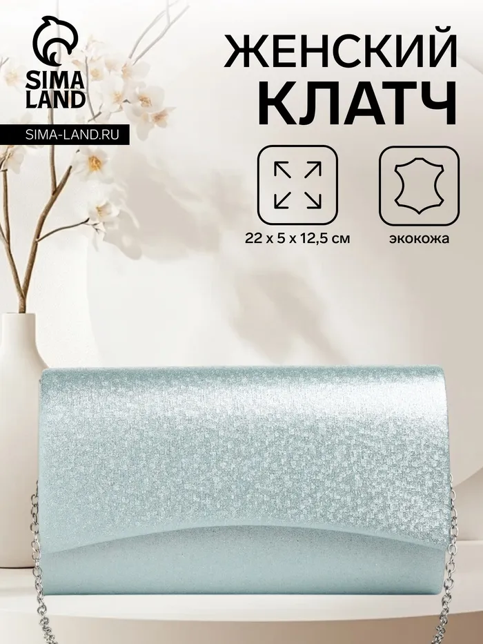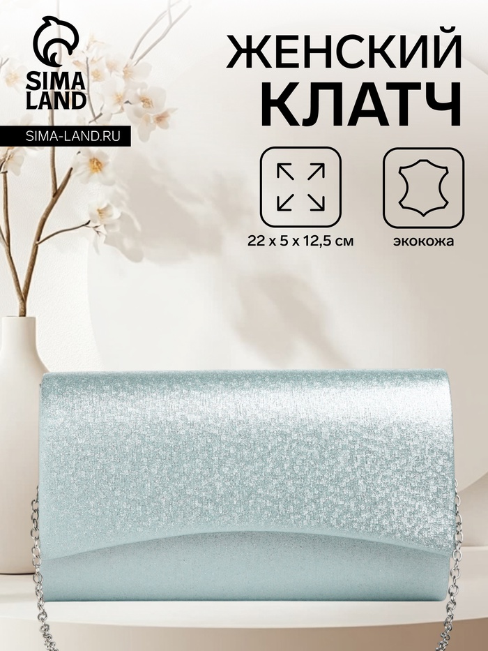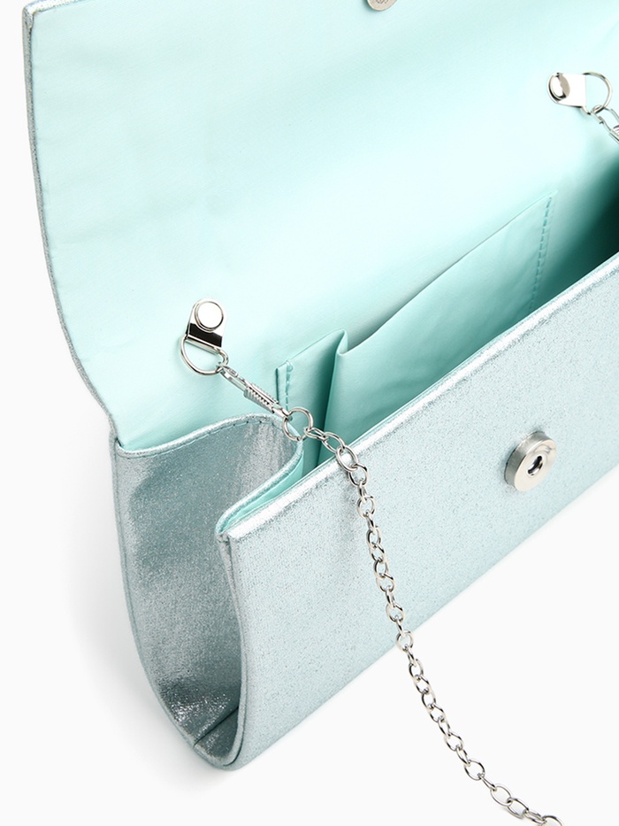 Сумка-клатч женская вечерняя на магните, на цепочке, мерцающая, голубая — Характеристики