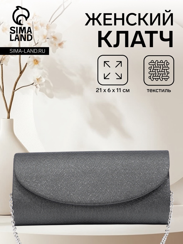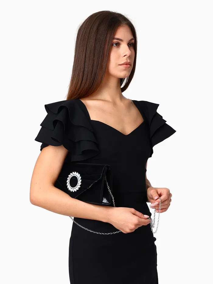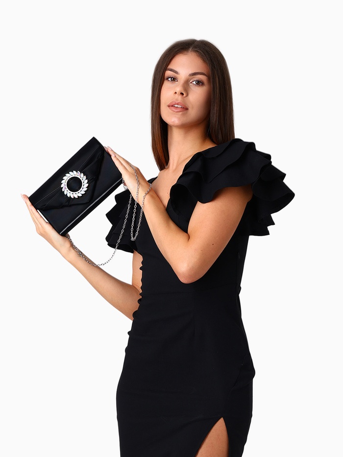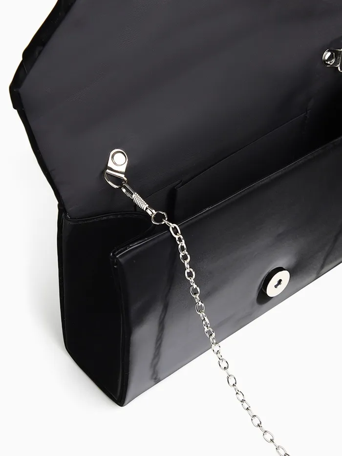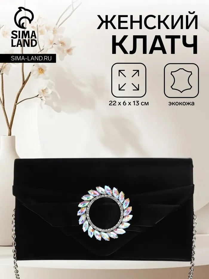 Сумка-клатч женская вечерняя на магните, на цепочке, с декоративной пряжкой, чёрная — Характеристики