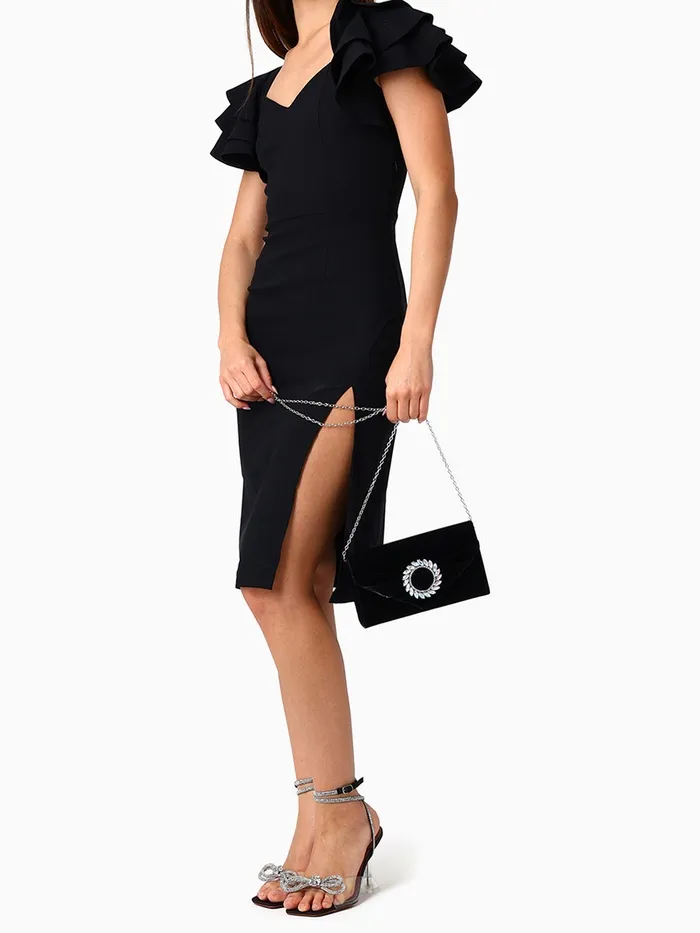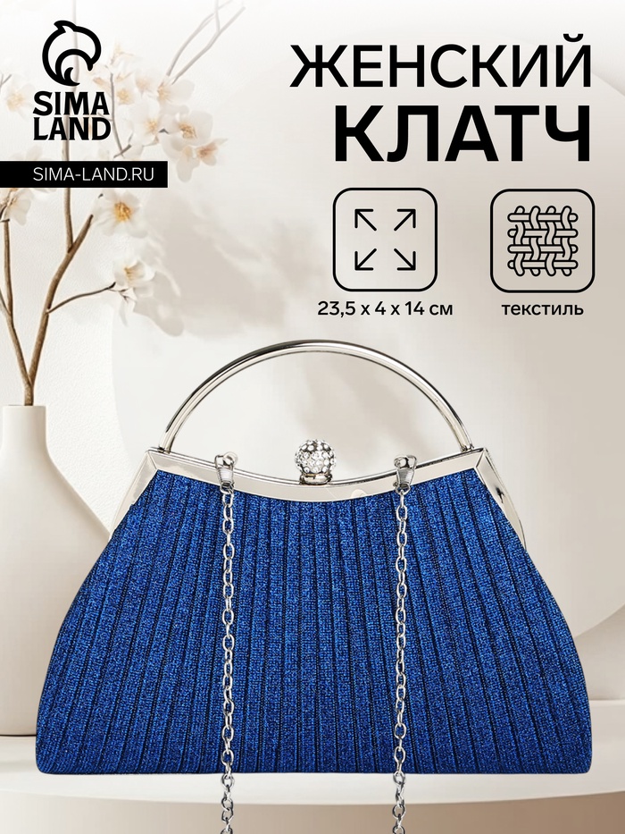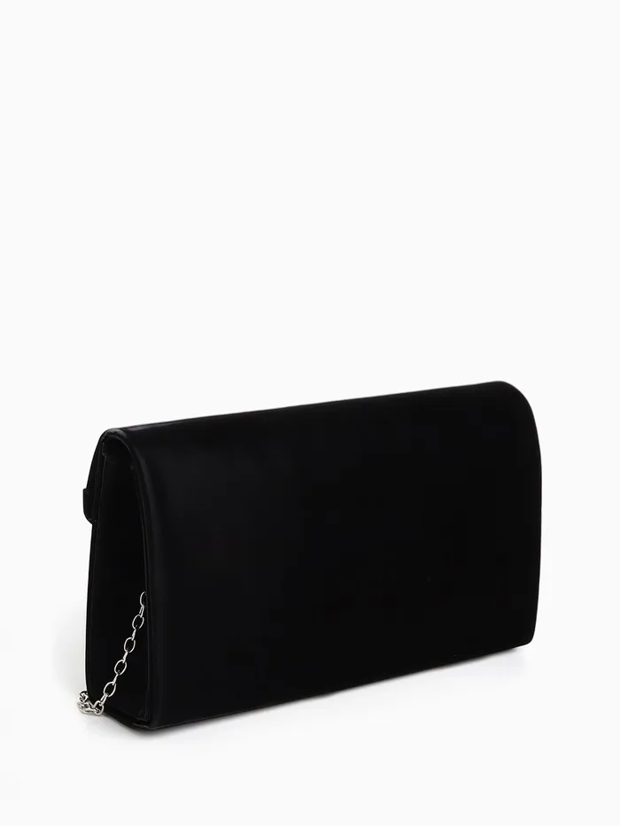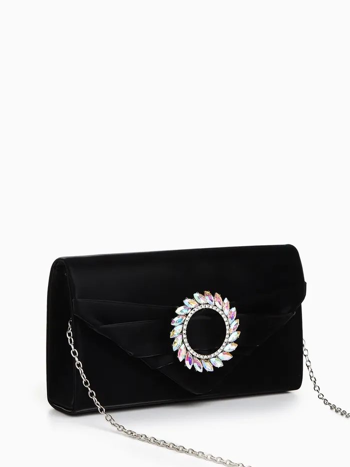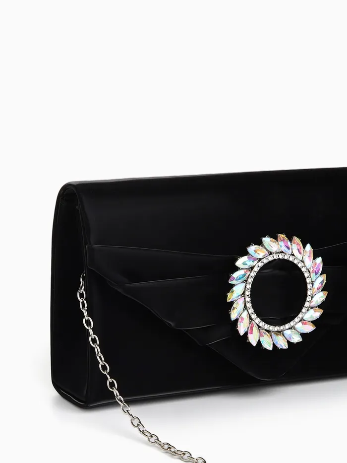 Сумка-клатч женская вечерняя на магните, на цепочке, с декоративной пряжкой, чёрная — Характеристики
