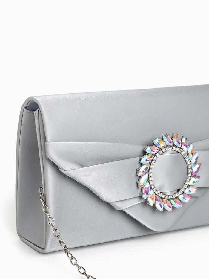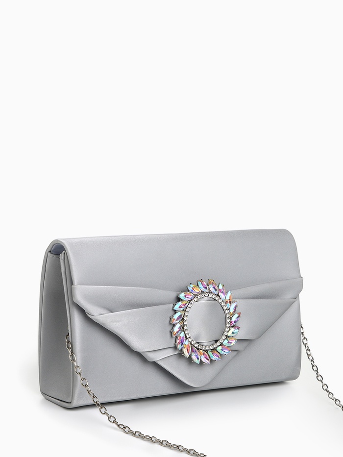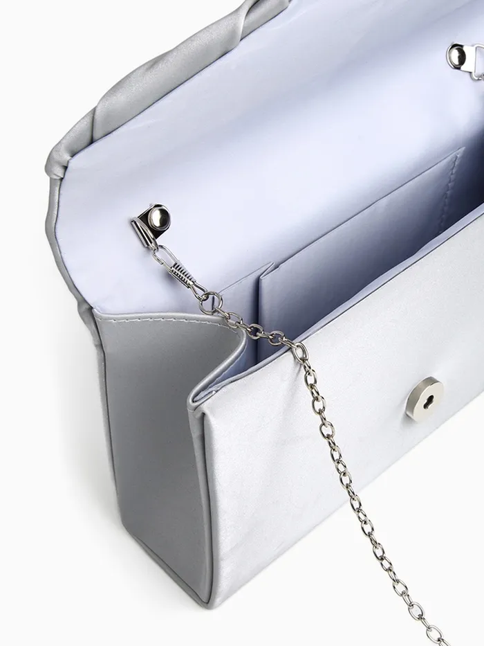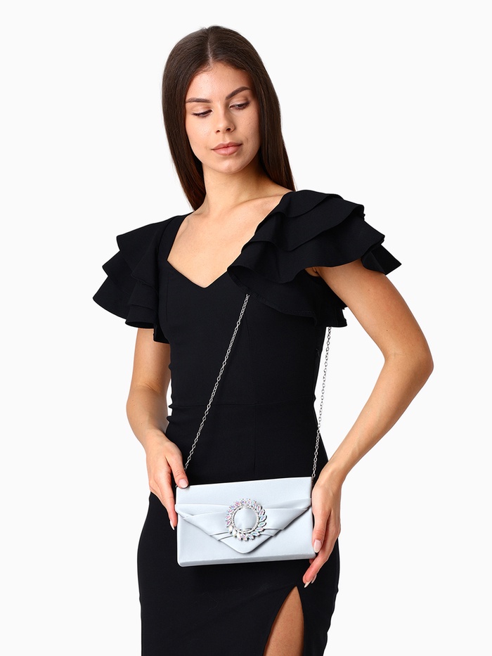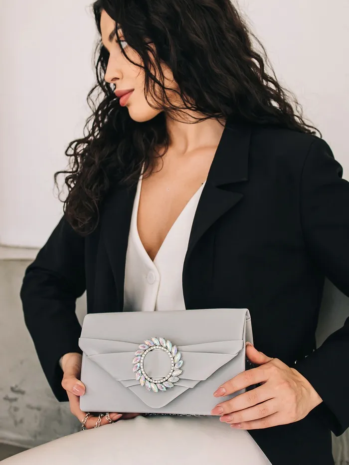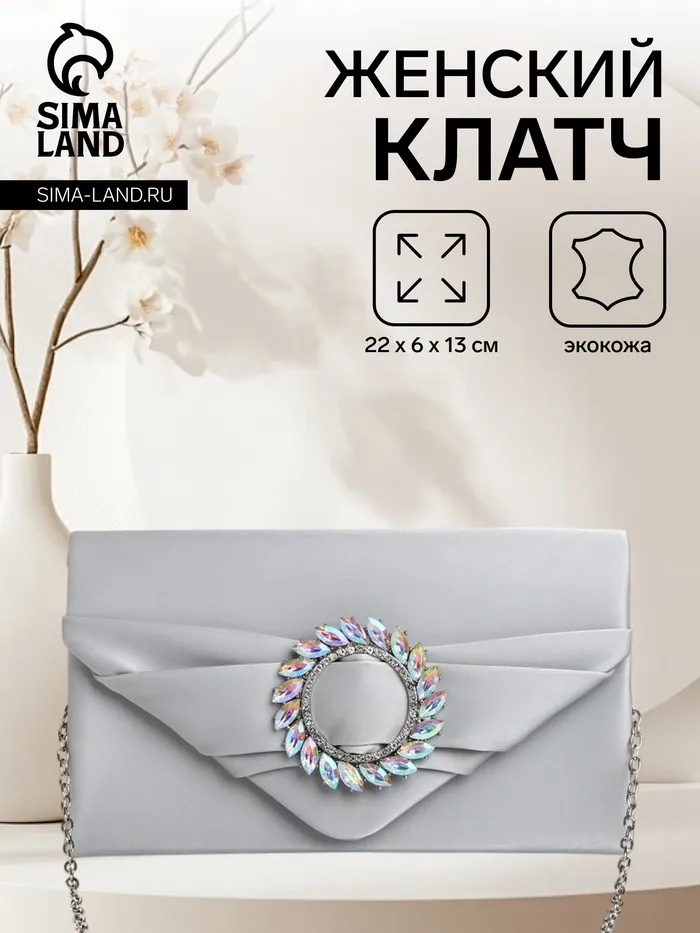 Сумка-клатч женская вечерняя на магните, на цепочке, с декоративной пряжкой, серебристая — Характеристики
