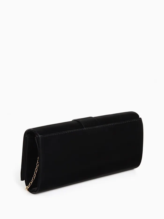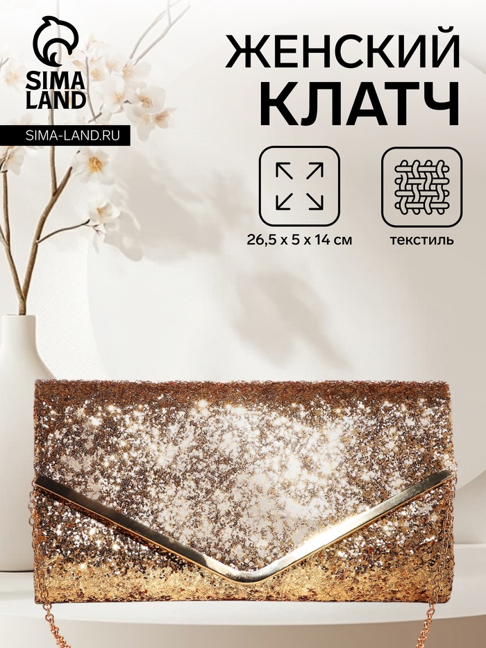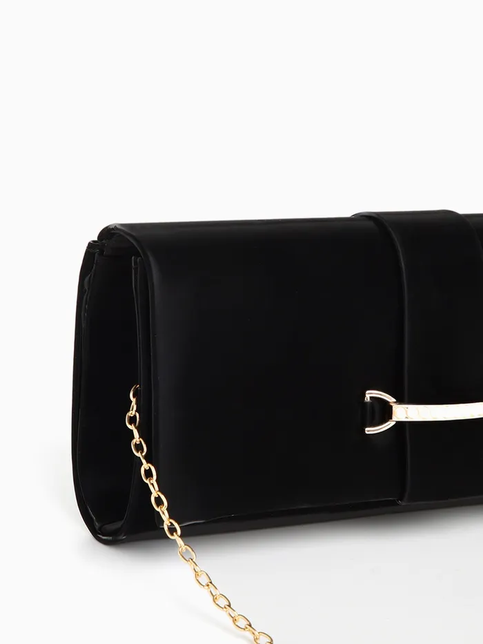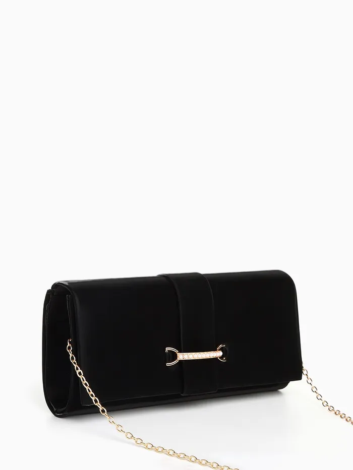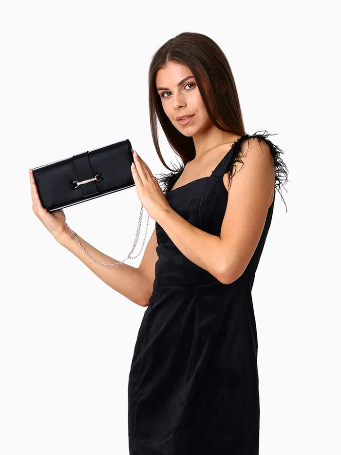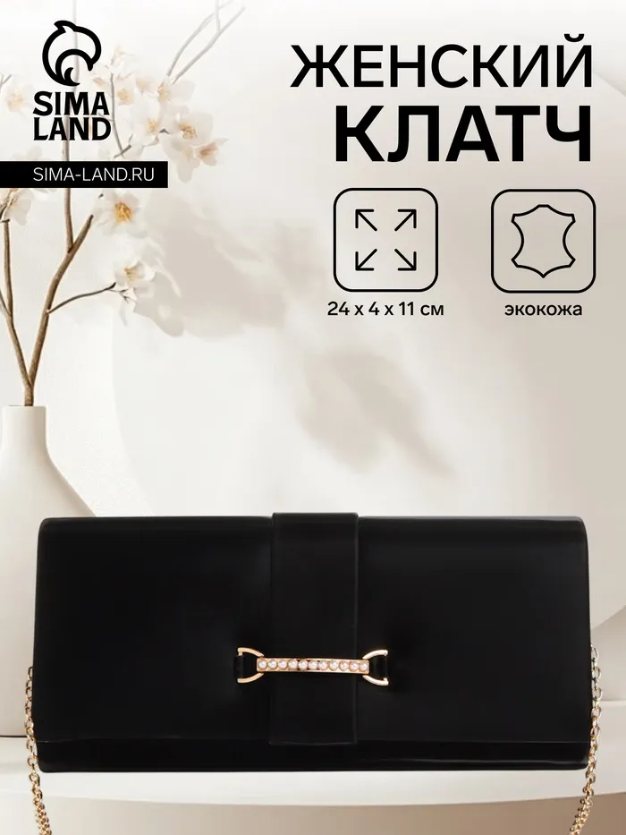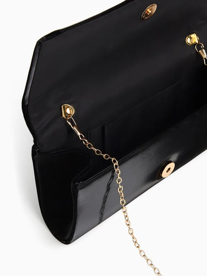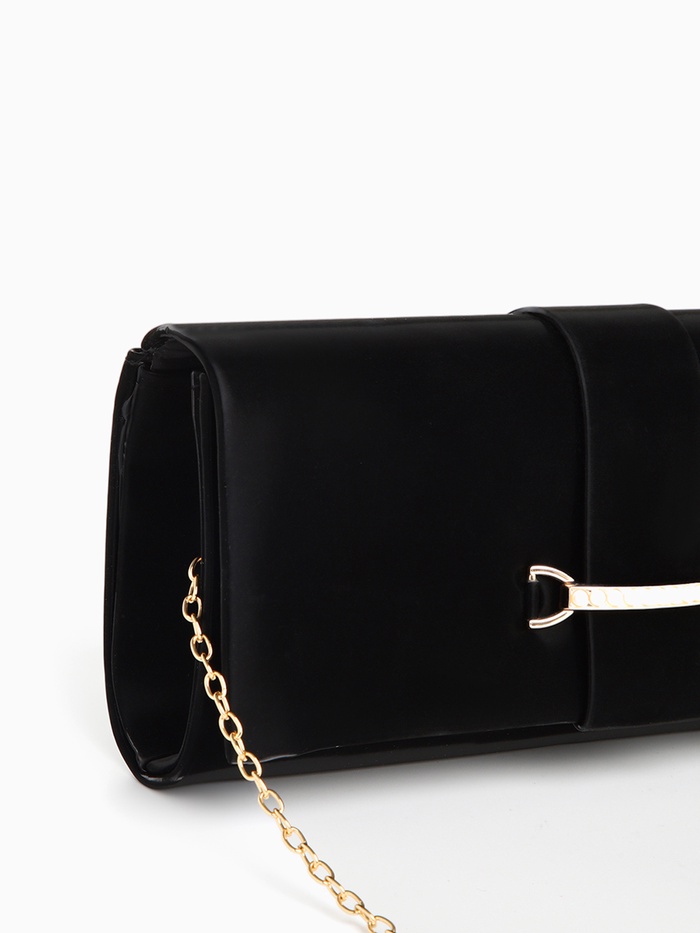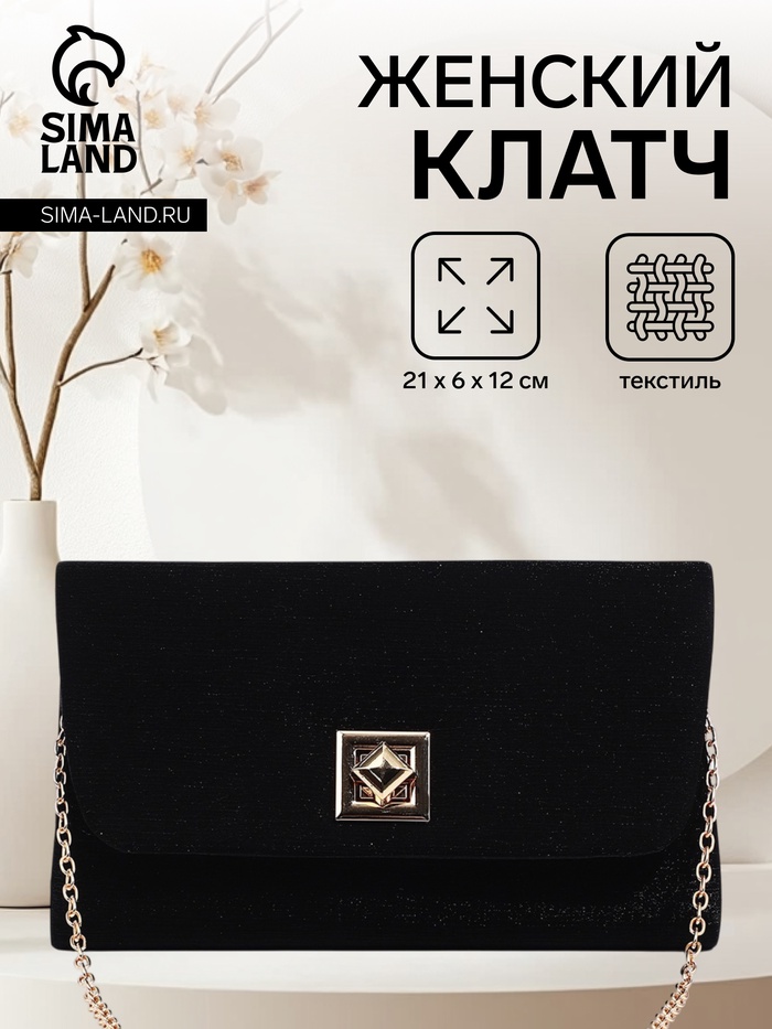 Сумка-клатч женская вечерняя на магните, на цепочке, с золотистой фурнитурой, однотонная, чёрная — Характеристики