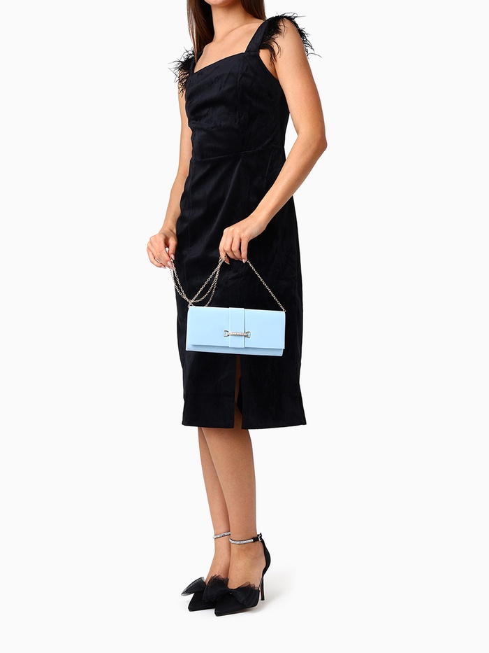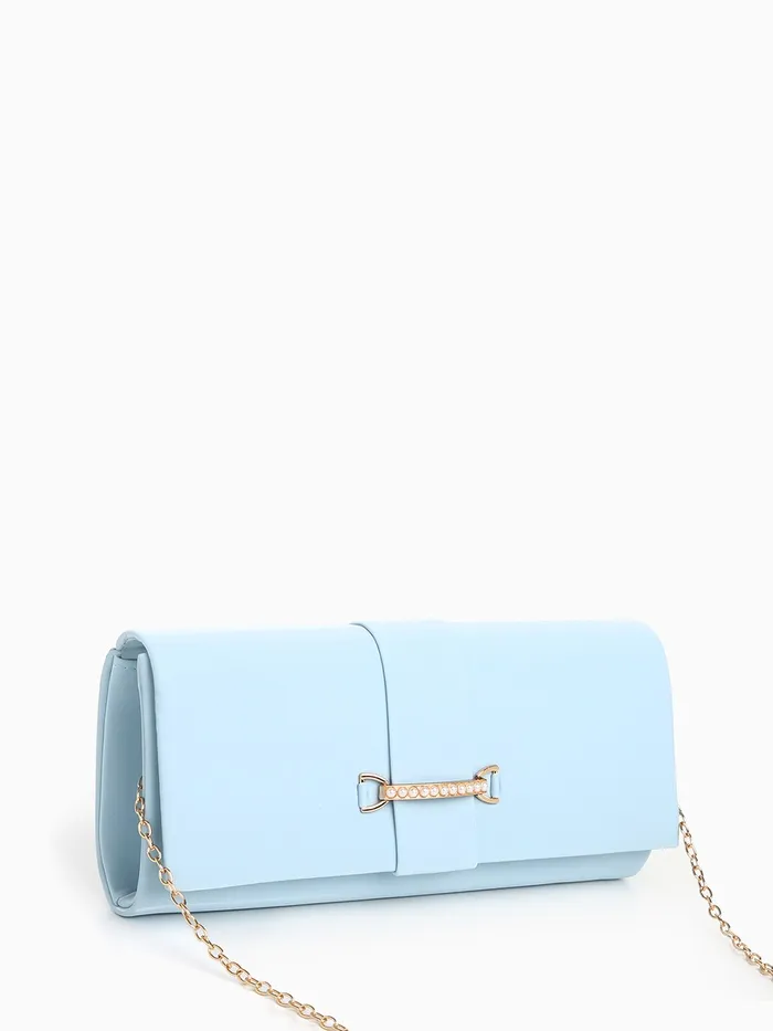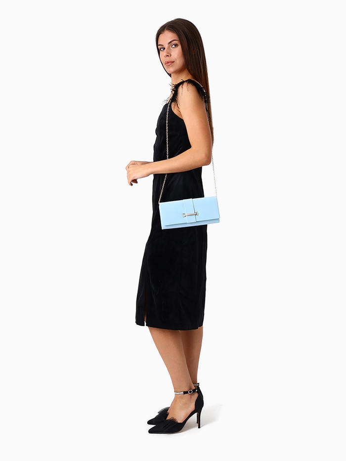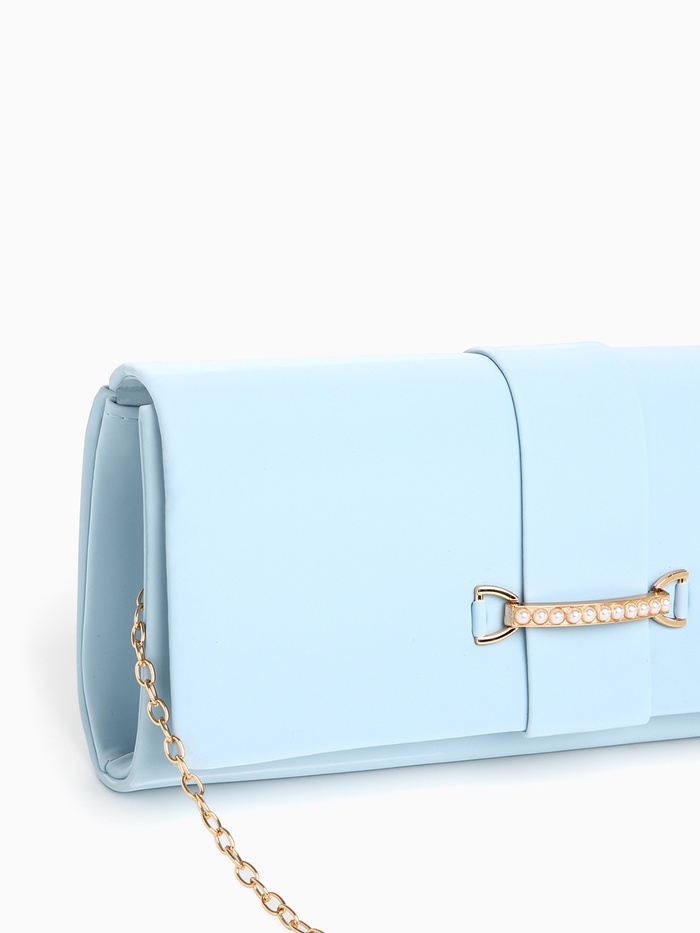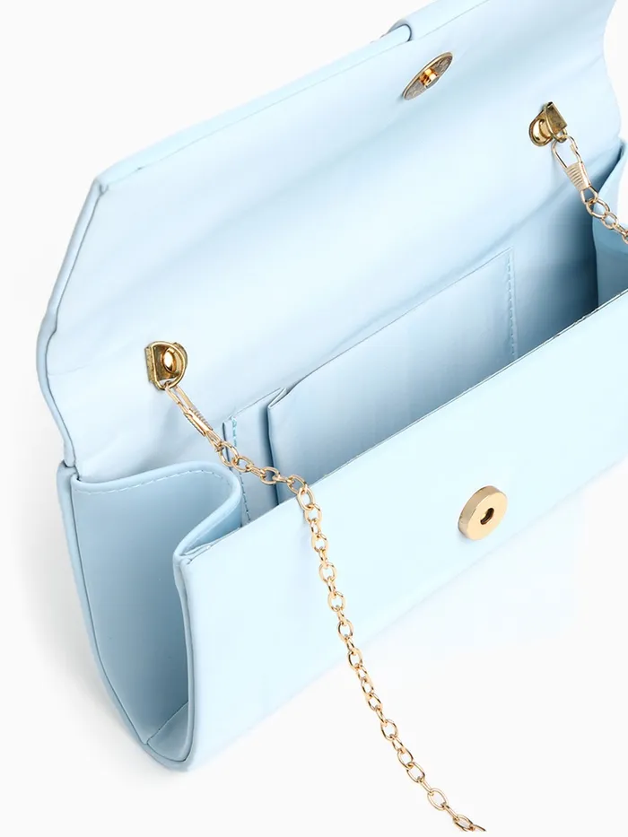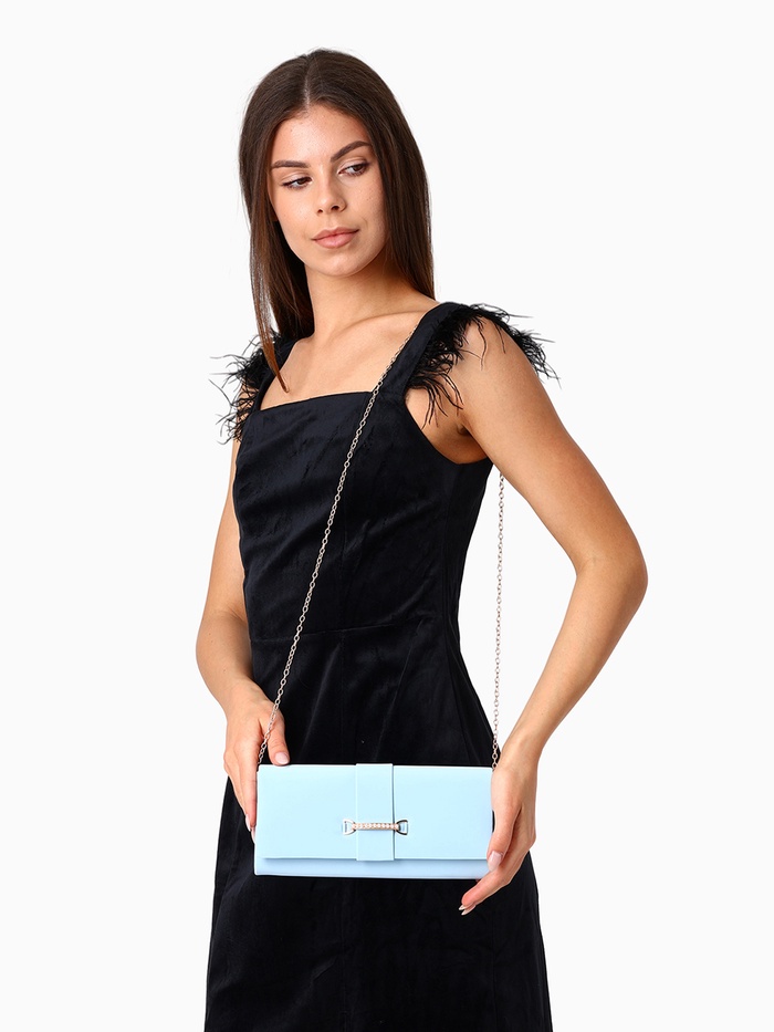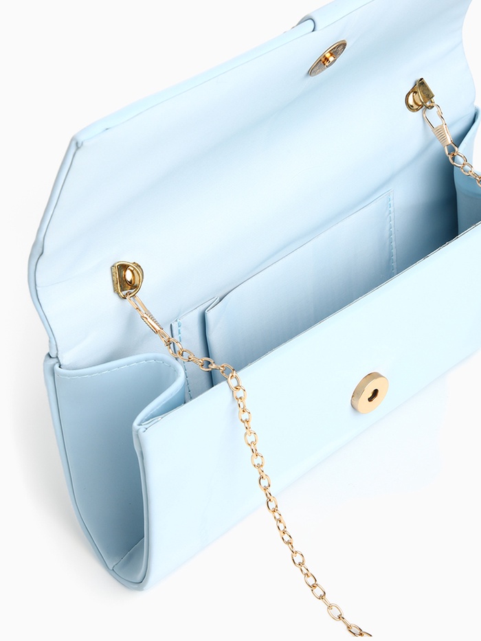 Сумка-клатч женская вечерняя на магните, на цепочке, с золотистой фурнитурой, однотонная, голубая — Характеристики