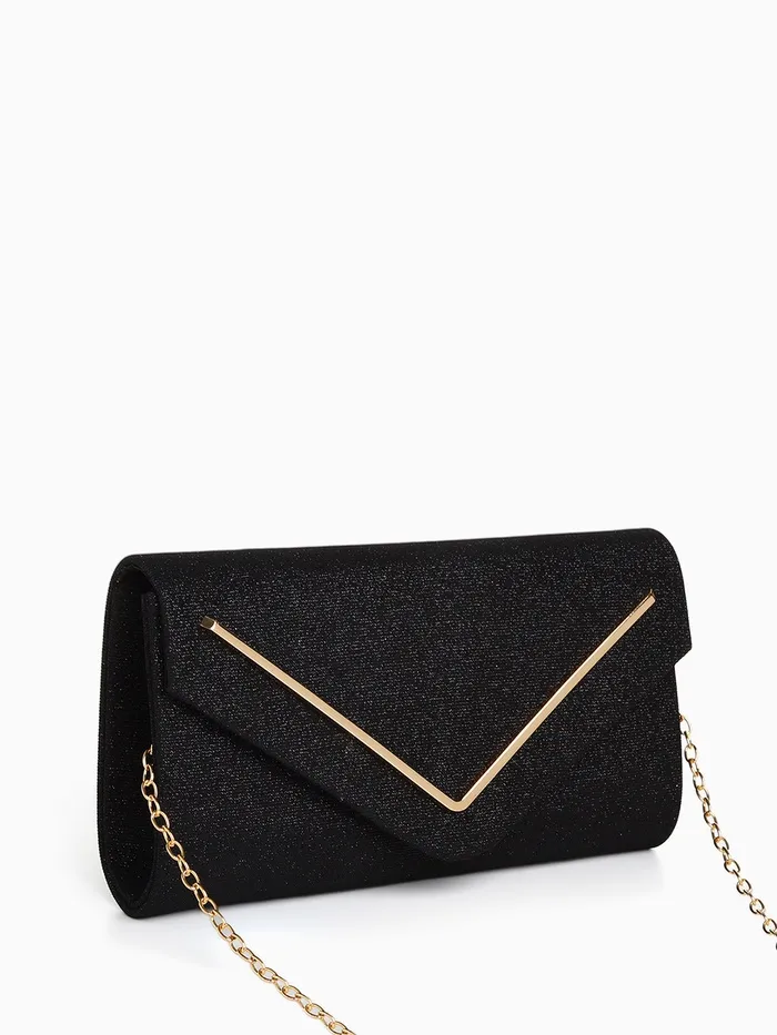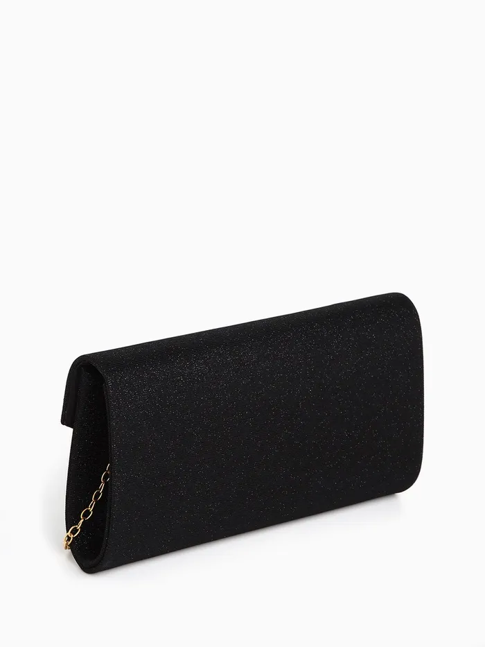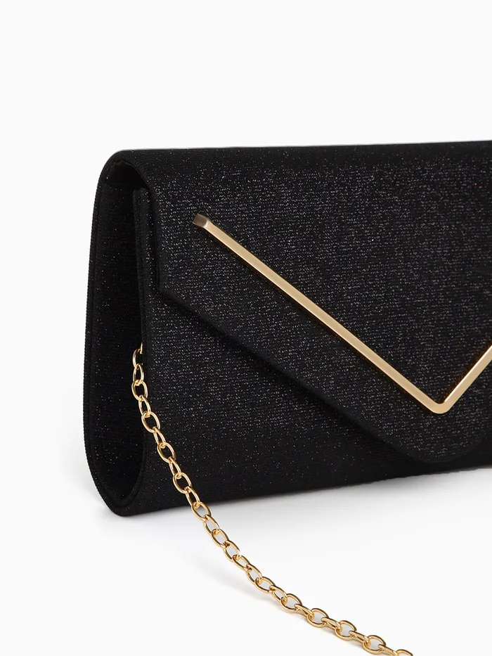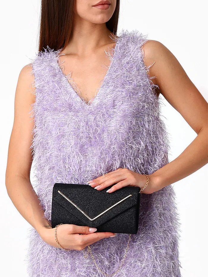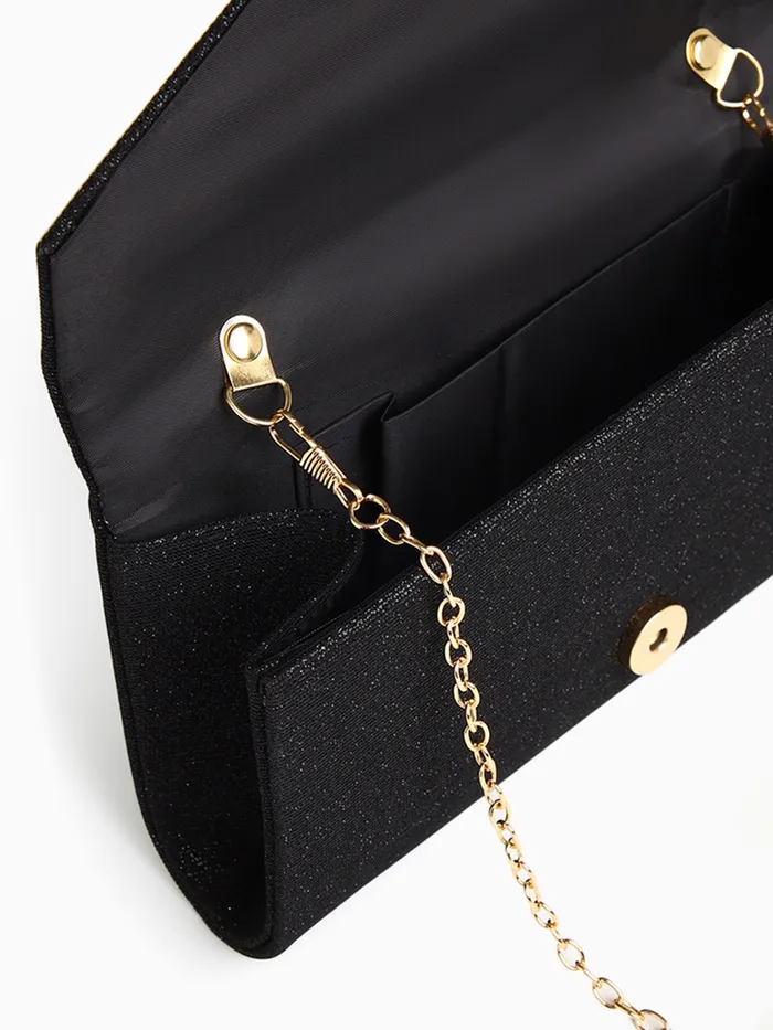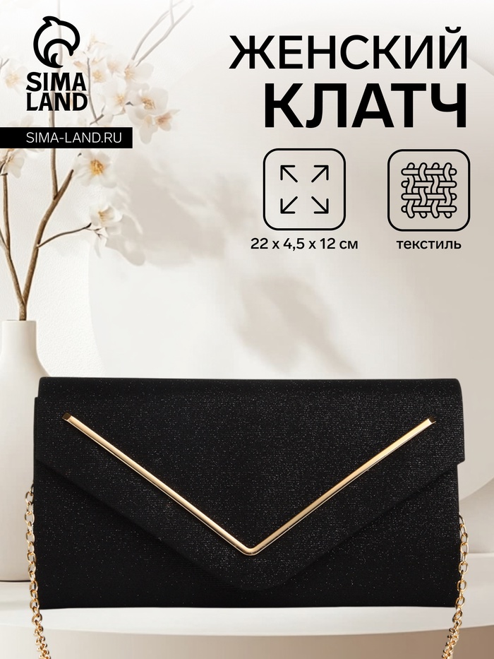 Сумка-клатч женская вечерняя на магните, на золотистой цепочке, чёрная — Характеристики
