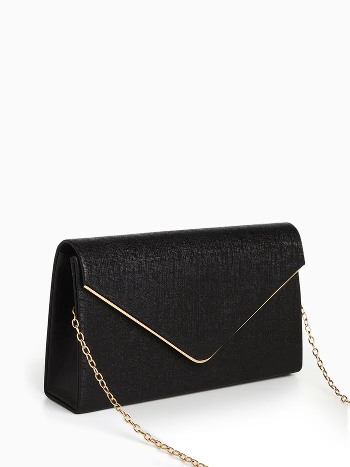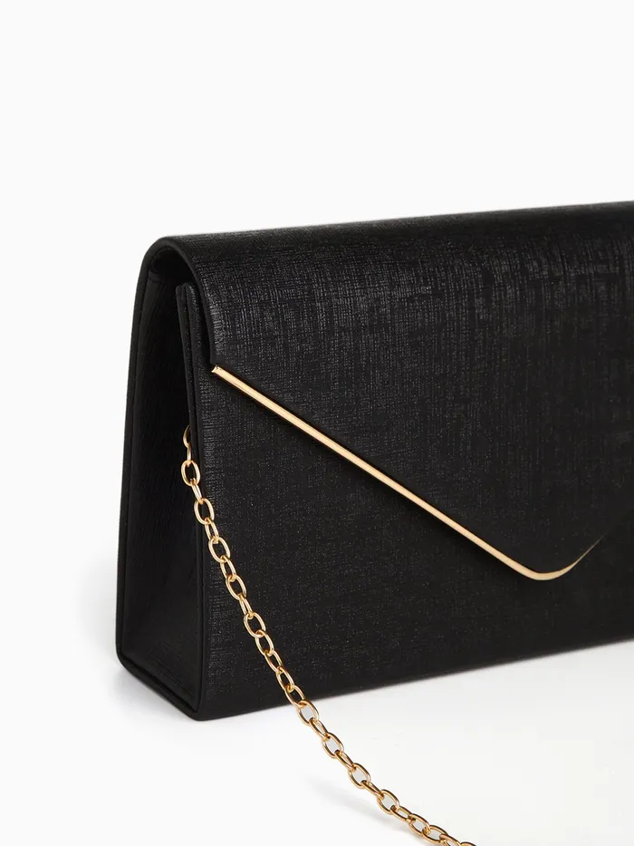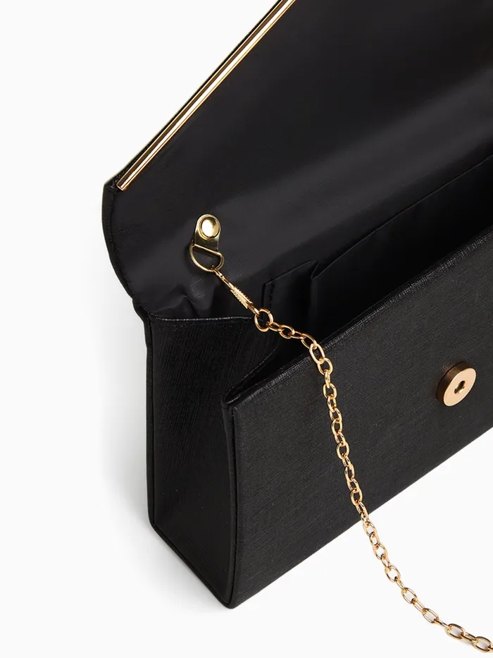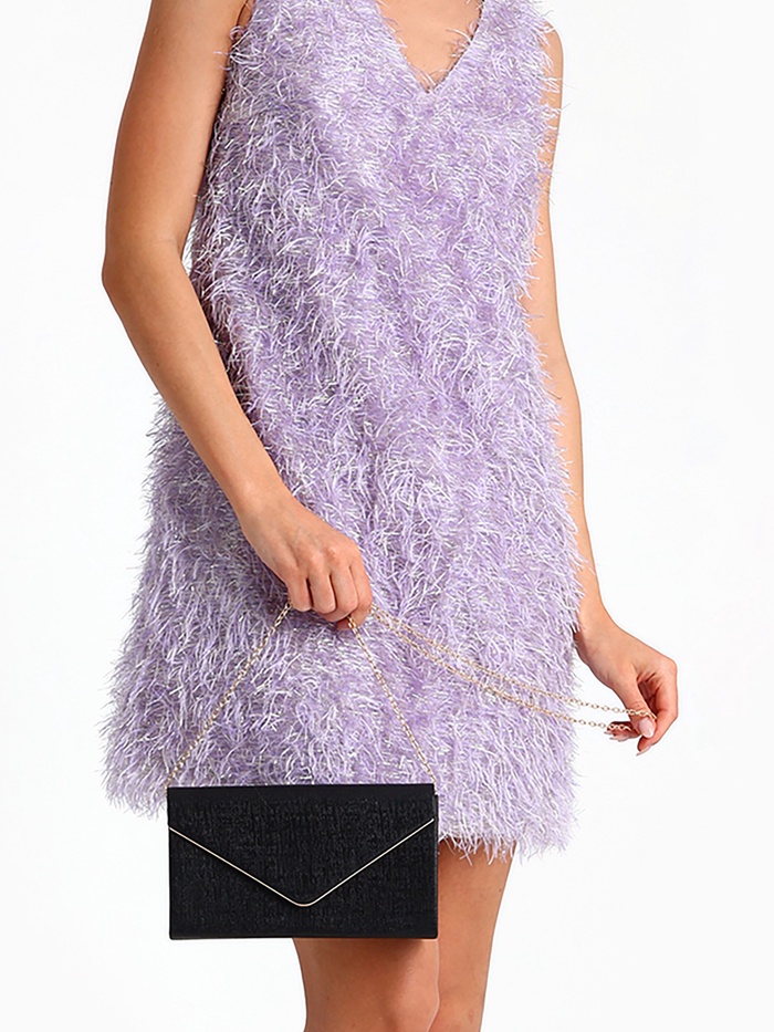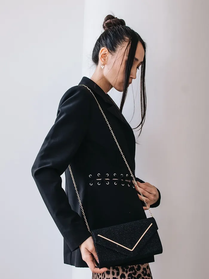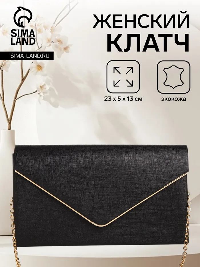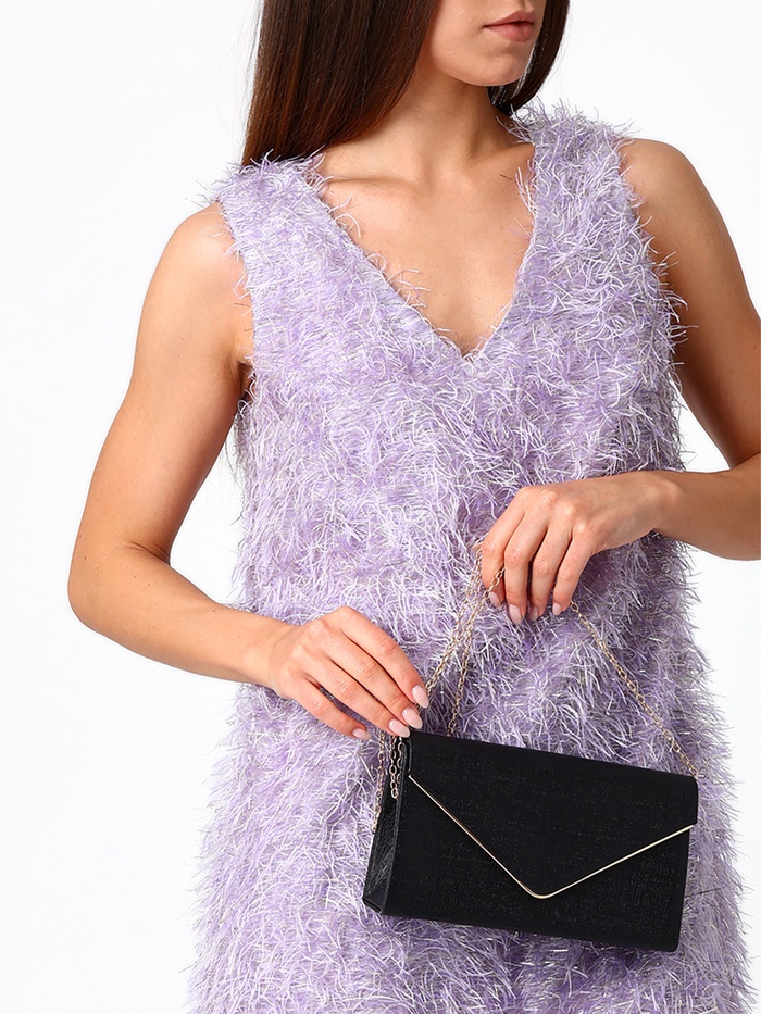 Сумка-клатч женская вечерняя на магните, на золотистой цепочке, мерцающая, чёрная — Характеристики