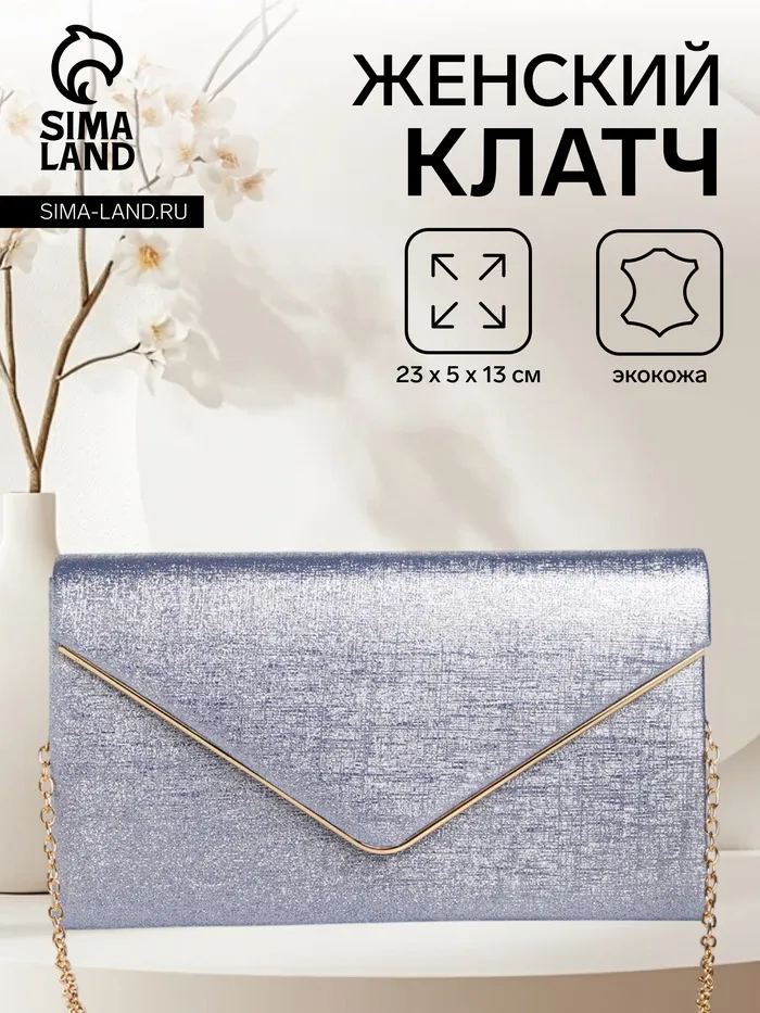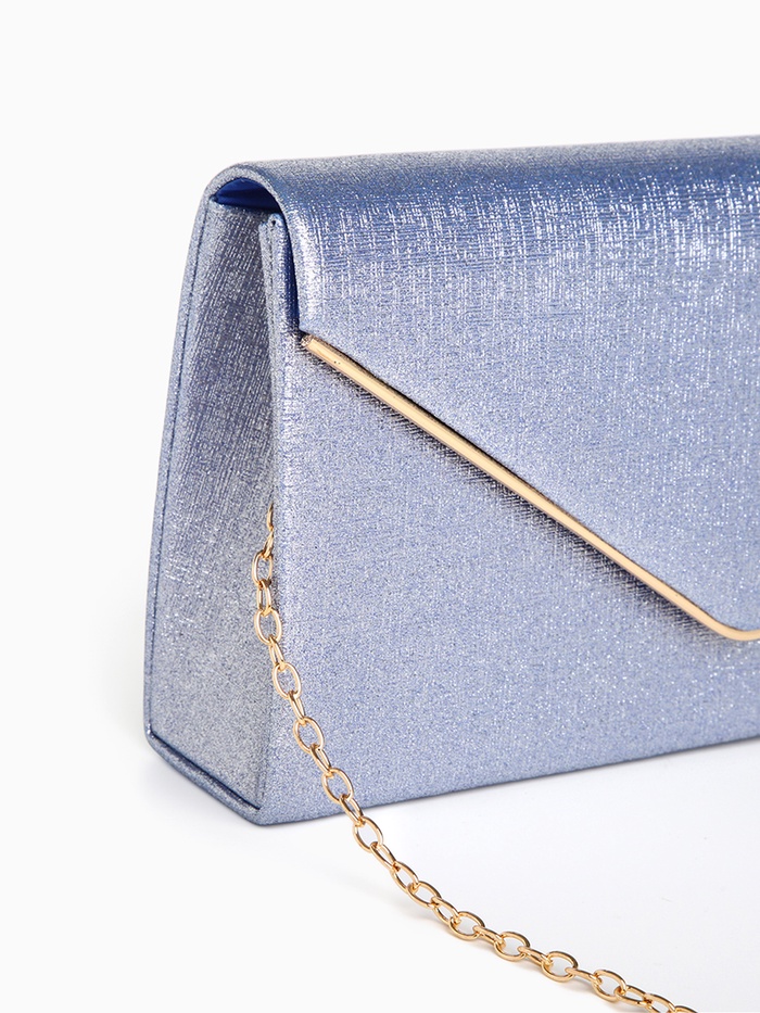 Сумка-клатч женская вечерняя на магните, на золотистой цепочке, мерцающая, светло-синяя — Характеристики