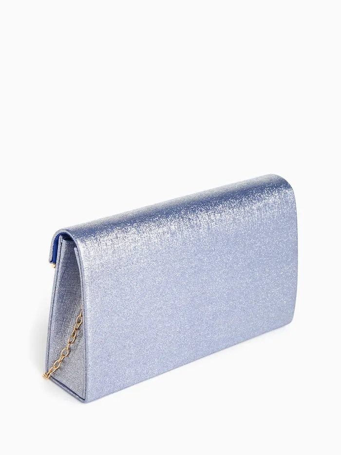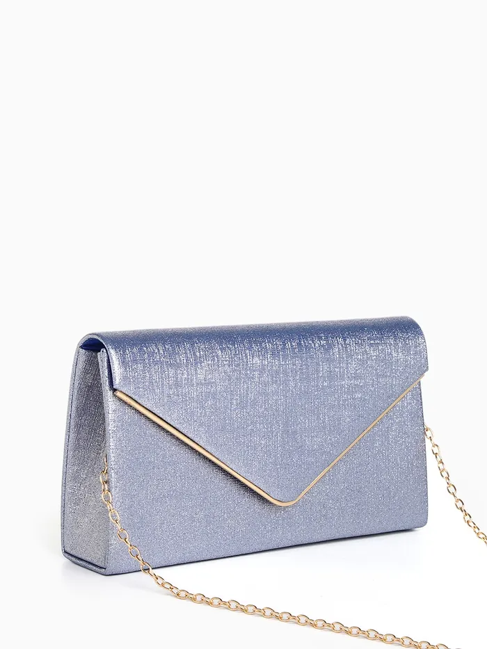 Сумка-клатч женская вечерняя на магните, на золотистой цепочке, мерцающая, светло-синяя