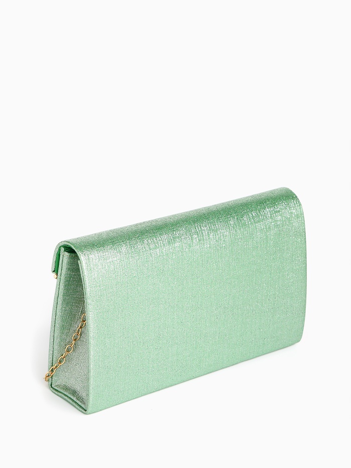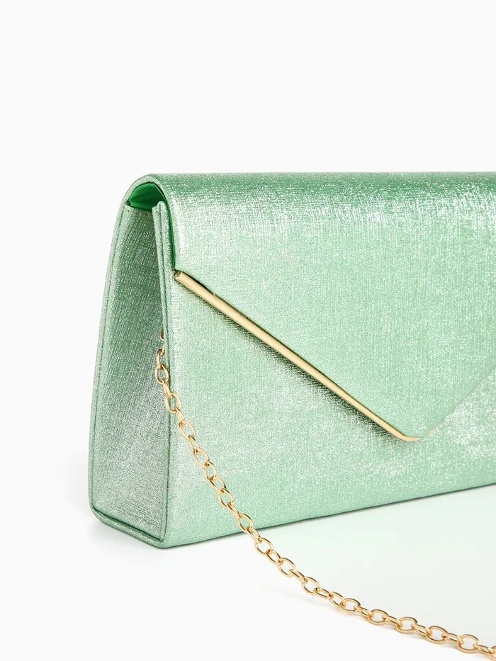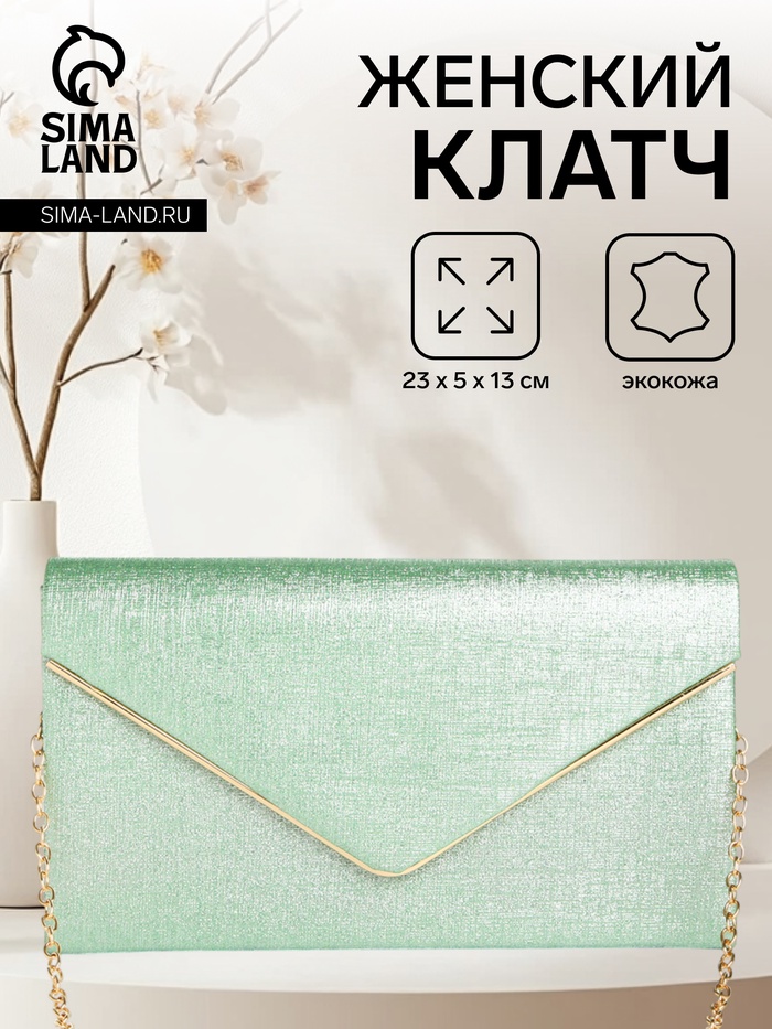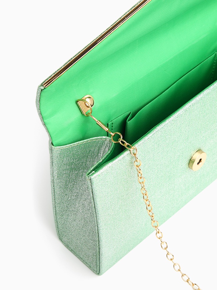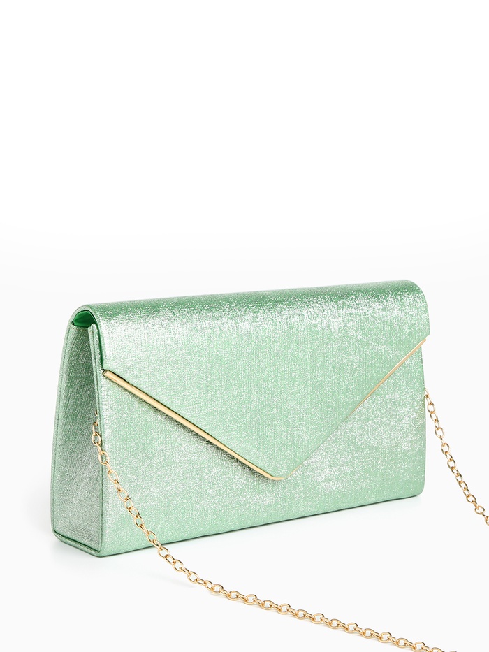 Сумка-клатч женская вечерняя на магните, на золотистой цепочке, мерцающая, светло-зелёная — Характеристики