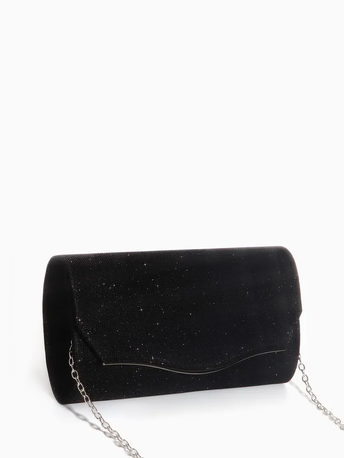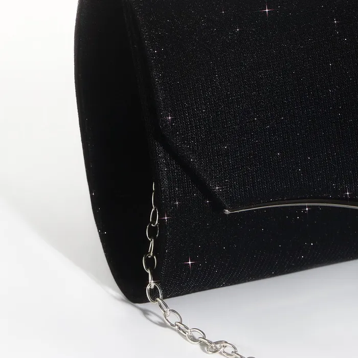 Сумка-клатч женская вечерняя на магните, с длинной цепочкой, чёрная — Характеристики
