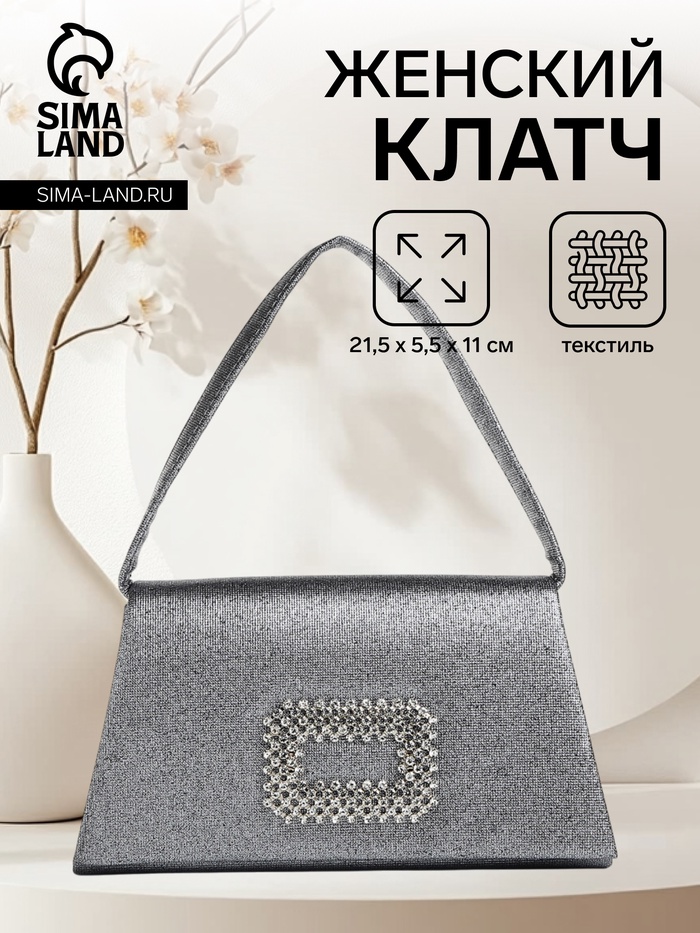 Сумка-клатч женская вечерняя на магните, серая — Характеристики