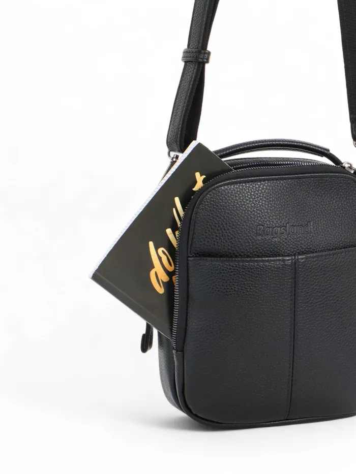 Сумка кросс-боди мужская Bagsland на молнии, 2 наружных кармана, с ручкой, длинный ремень, 17×6×20 см, чёрная — Характеристики