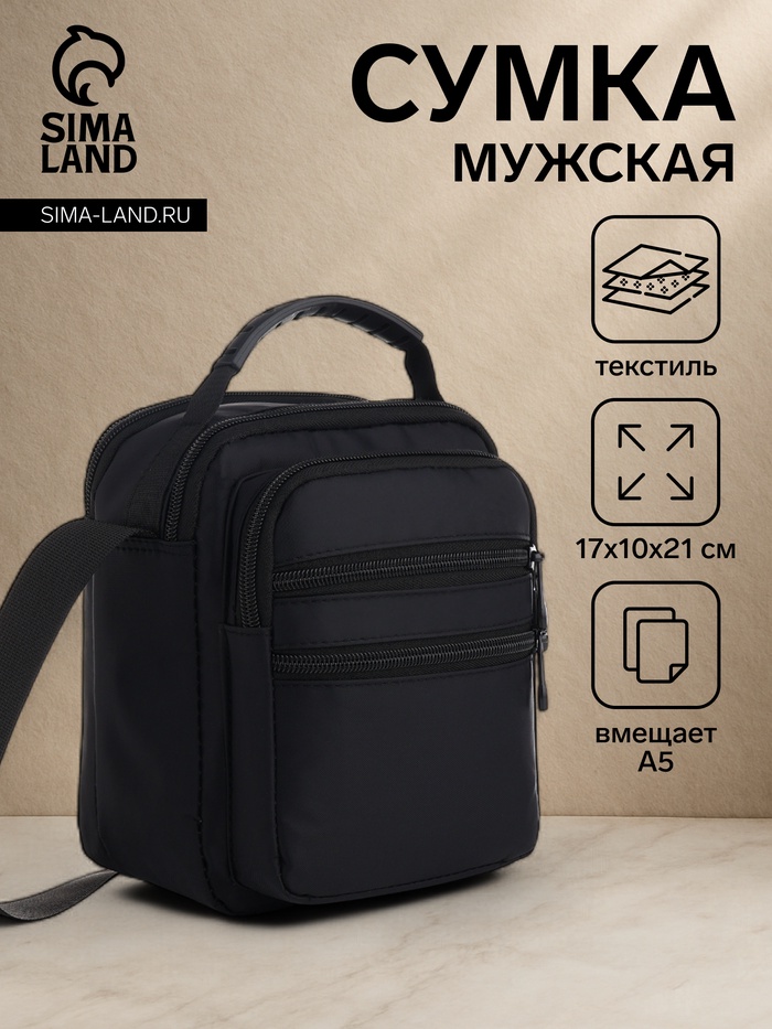 Сумка кросс-боди мужская на молнии, 2 наружных кармана, 27×10×20 см, серая — Характеристики