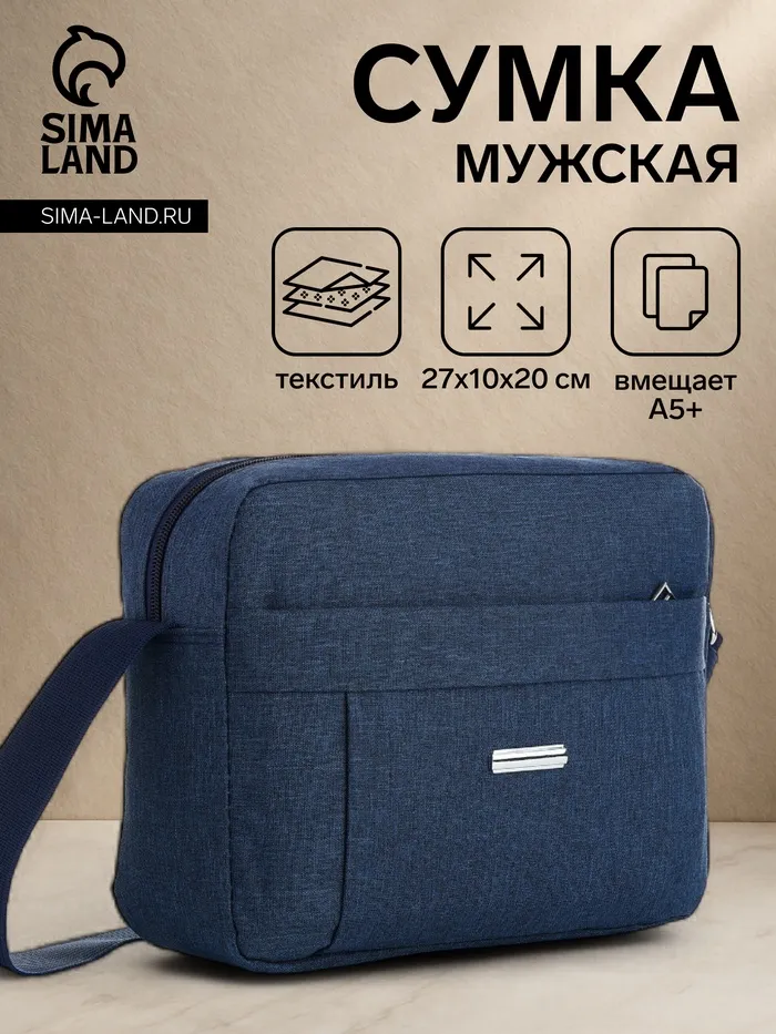 Сумка кросс-боди мужская на молнии, 2 наружных кармана, 27×10×20 см, синяя — Характеристики