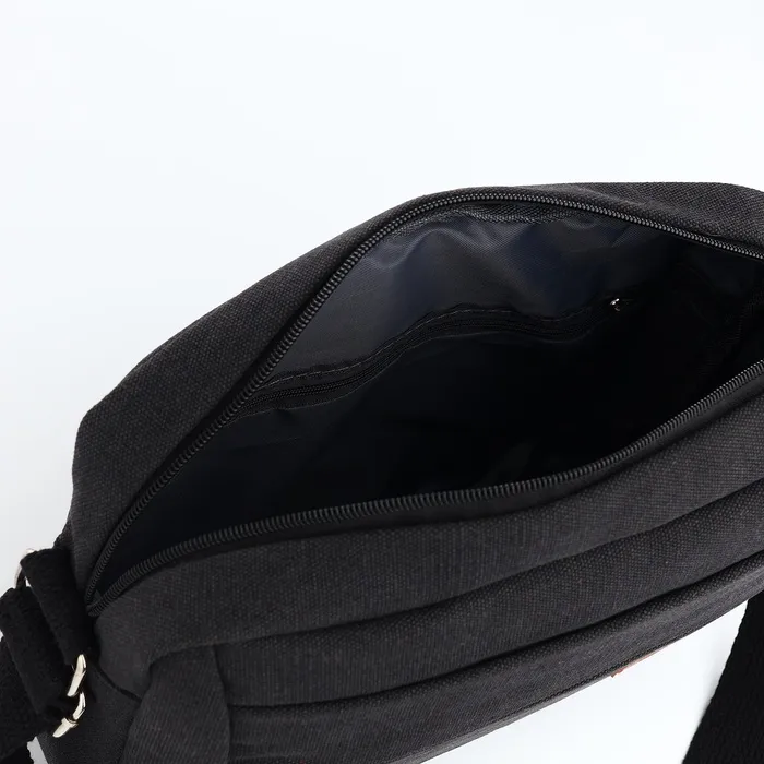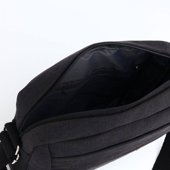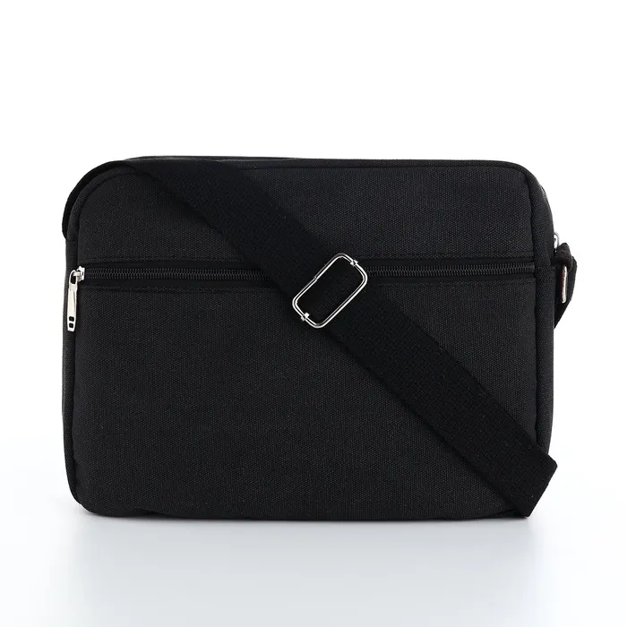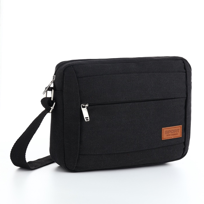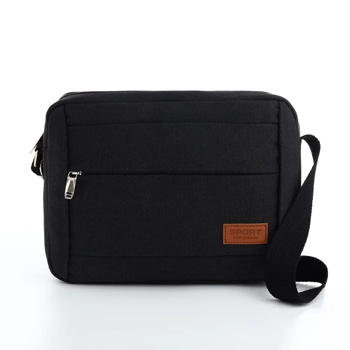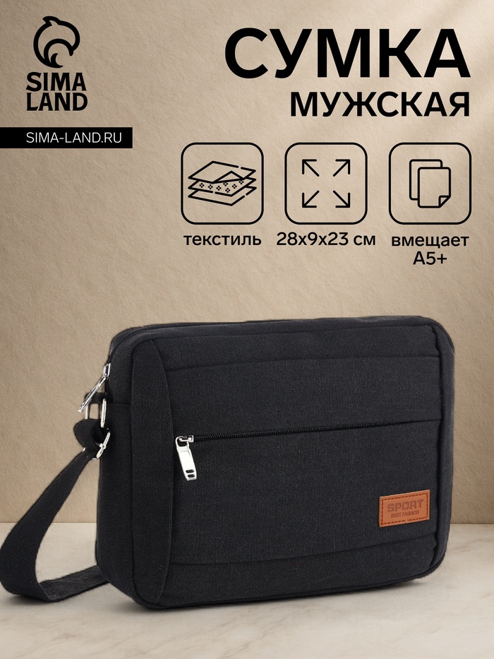 Сумка кросс-боди мужская на молнии, 2 наружных кармана, длинный ремень, 28×9×23 см, чёрная — Характеристики
