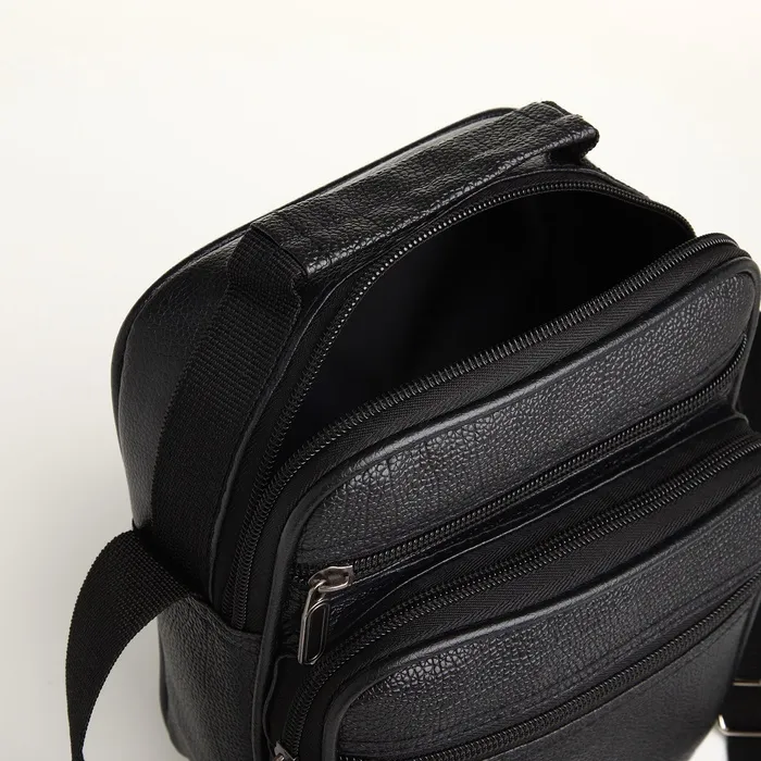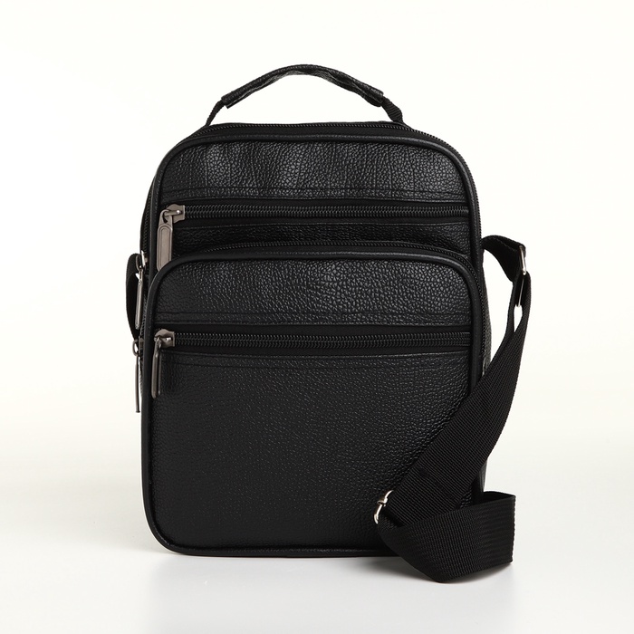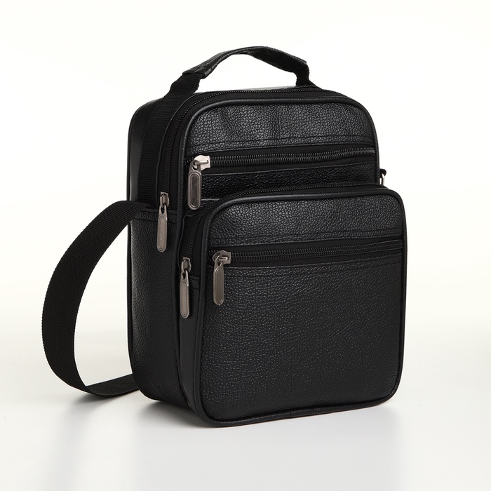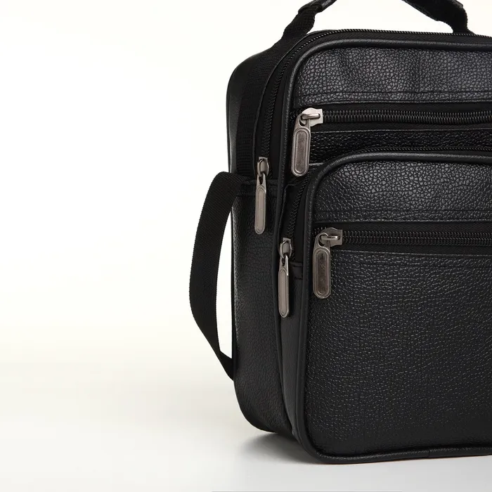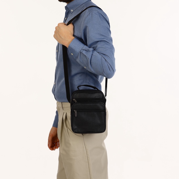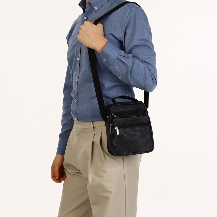 Сумка кросс-боди мужская на молнии, 3 наружных кармана, 21.5×10×17 см, чёрная — Характеристики