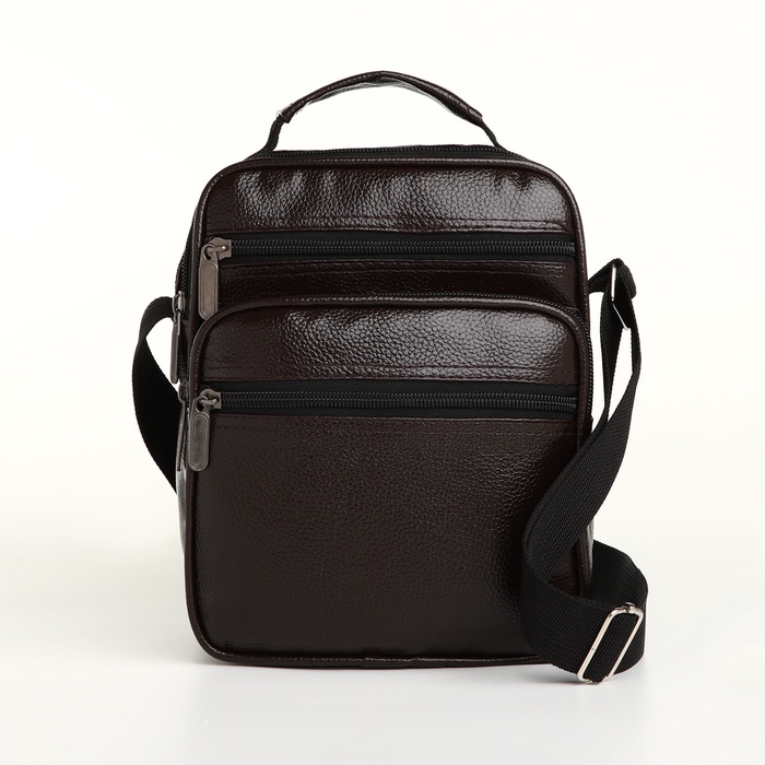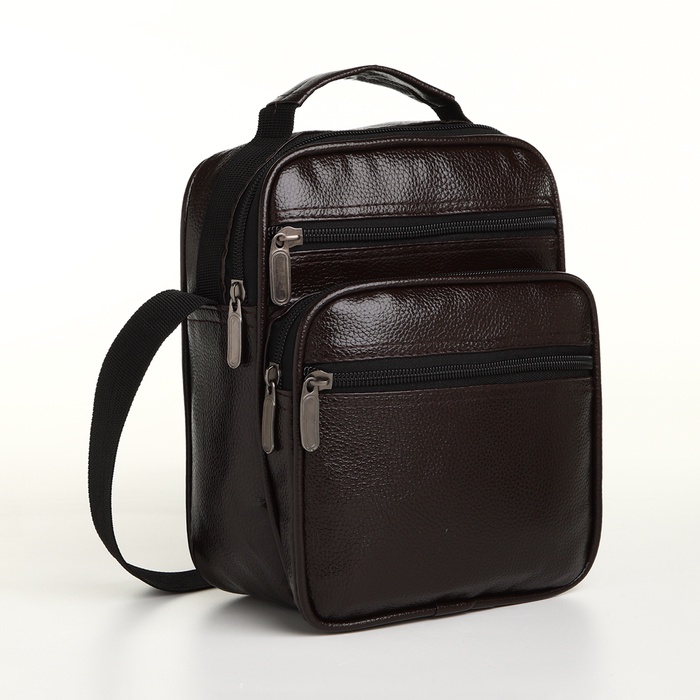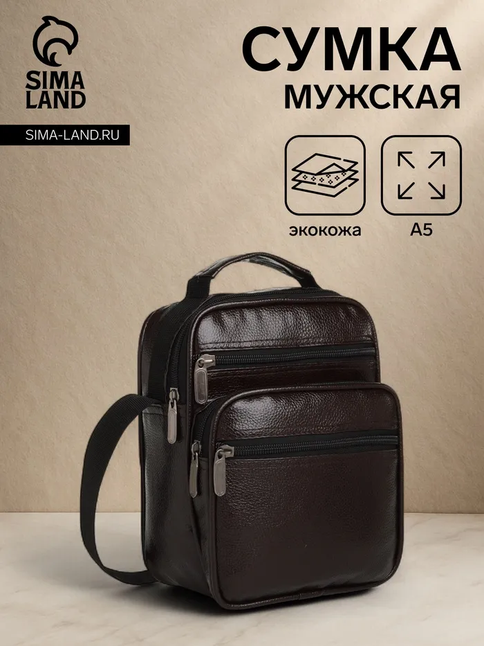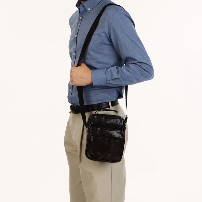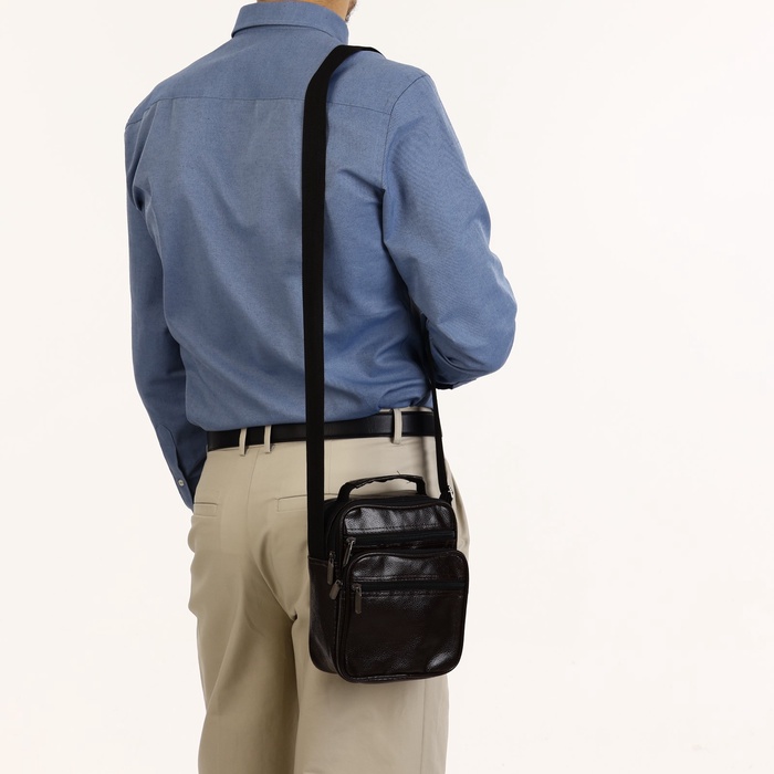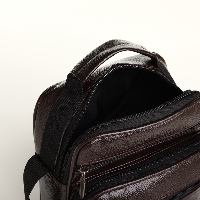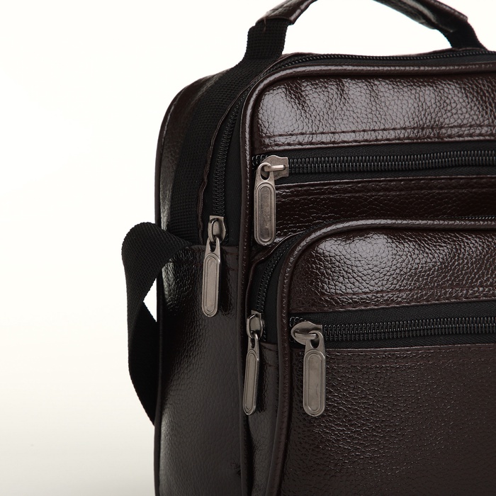 Сумка кросс-боди мужская на молнии, 3 наружных кармана, 21.5×10×17 см, коричневая — Характеристики