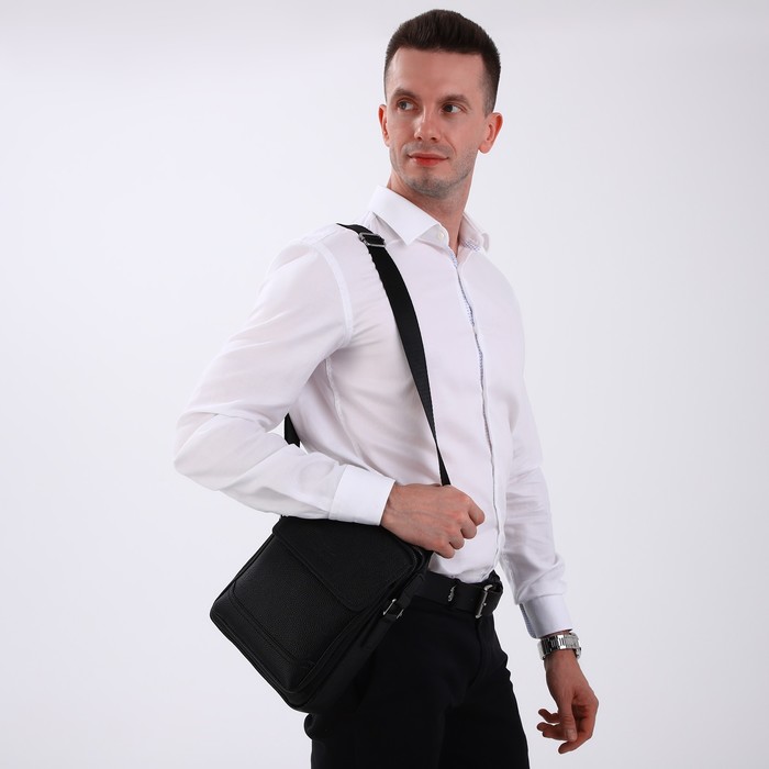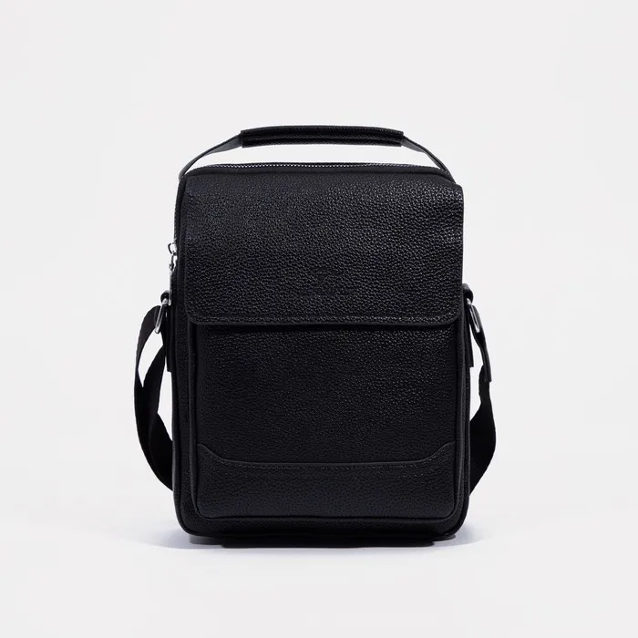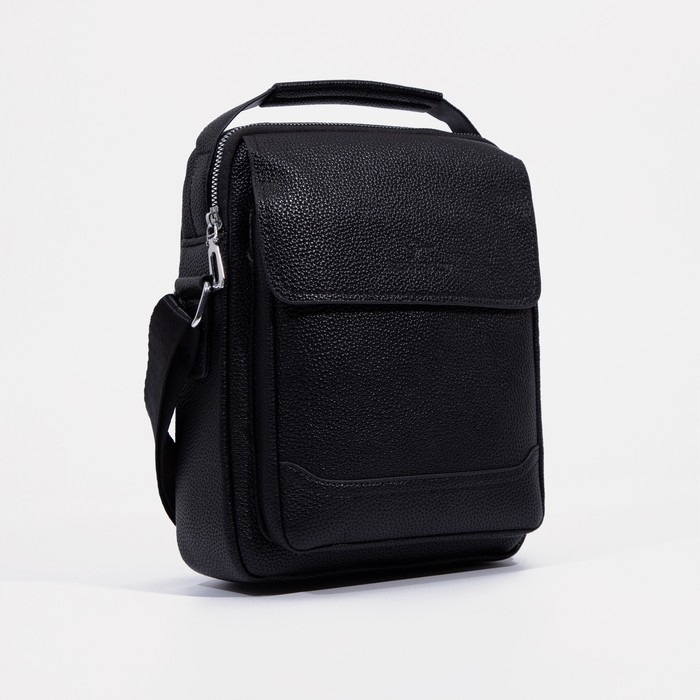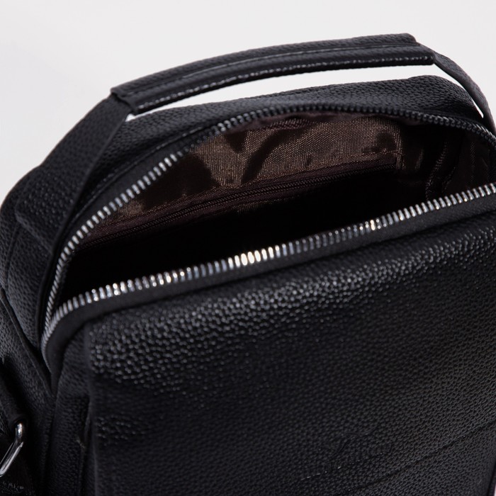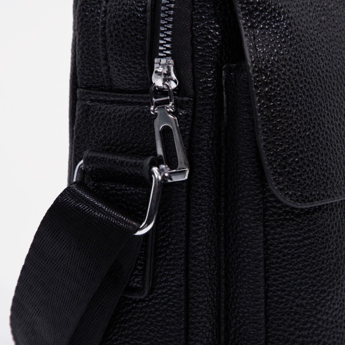 Сумка кросс-боди мужская на молнии, с ручкой, 2 наружных кармана, 21×6×25 см, чёрная — Характеристики