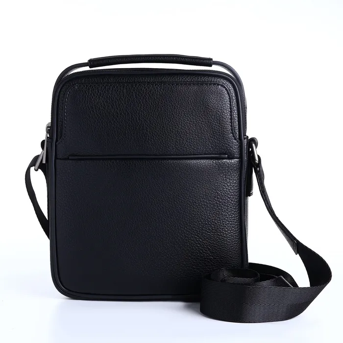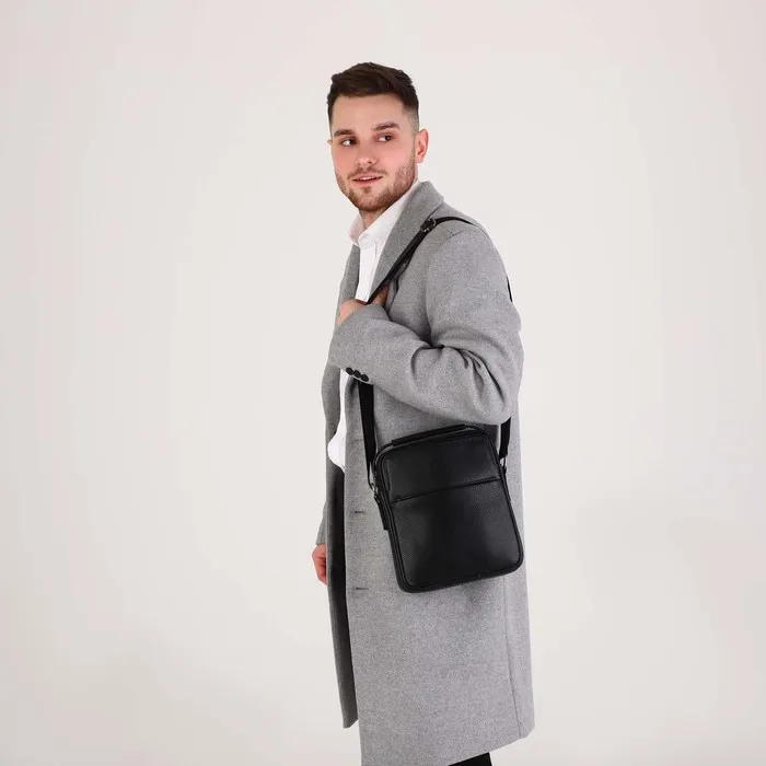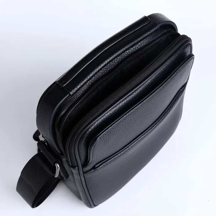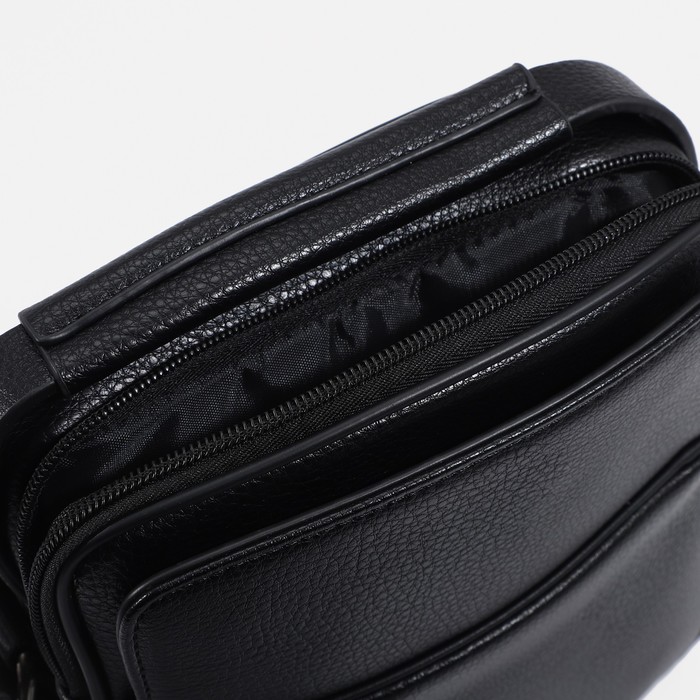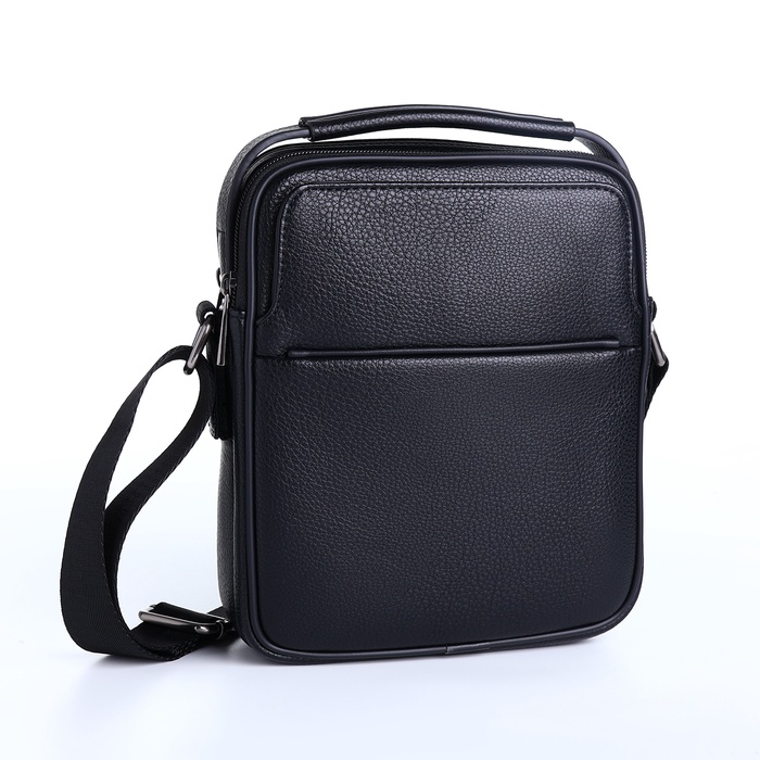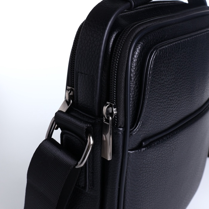 Сумка кросс-боди мужская на молнии, с ручкой, 2 наружных кармана, 23×7×19 см, чёрная — Характеристики