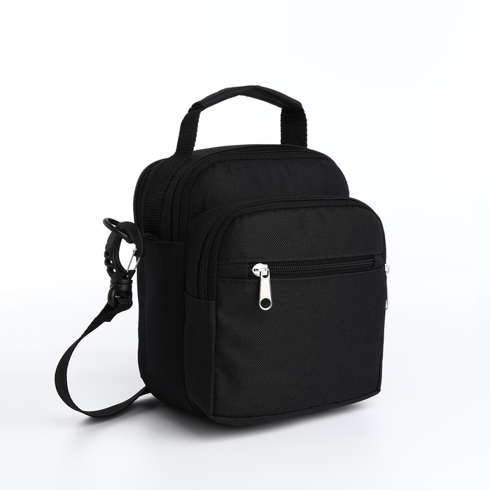 Сумка кросс-боди мужская «Сакси», 2 отдела на молнии, 2 наружных кармана, с ручкой, длинный ремень, 14×12×19 см, чёрная — Характеристики