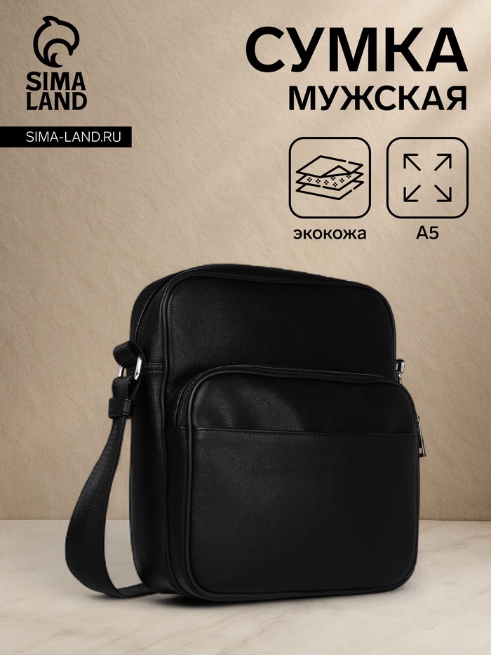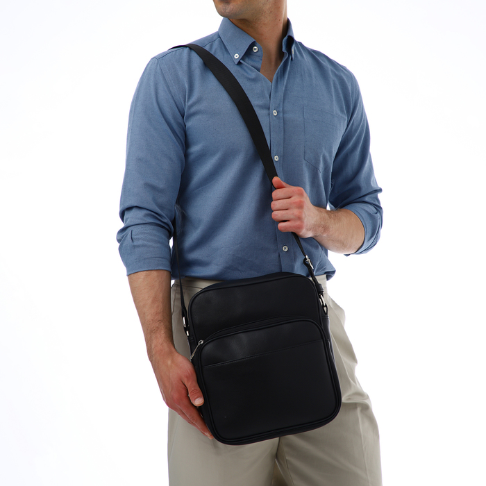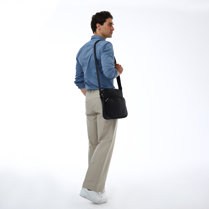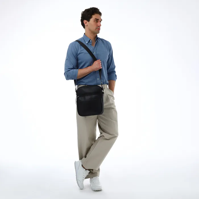 Сумка кросс-боди мужская TEXTURA, на молнии, 2 наружных кармана, 25×9×29 см, чёрная — Характеристики