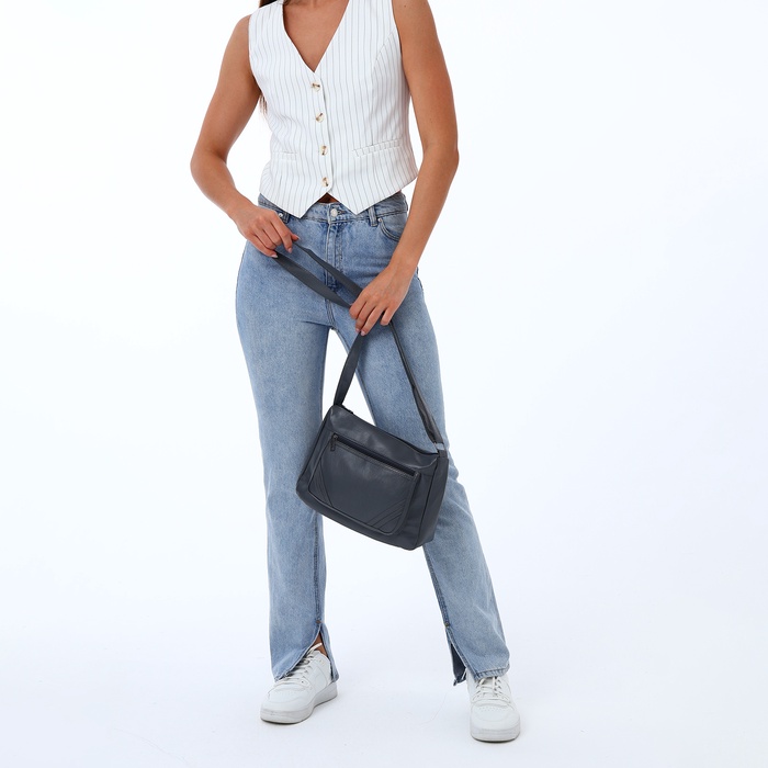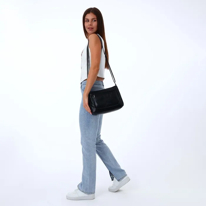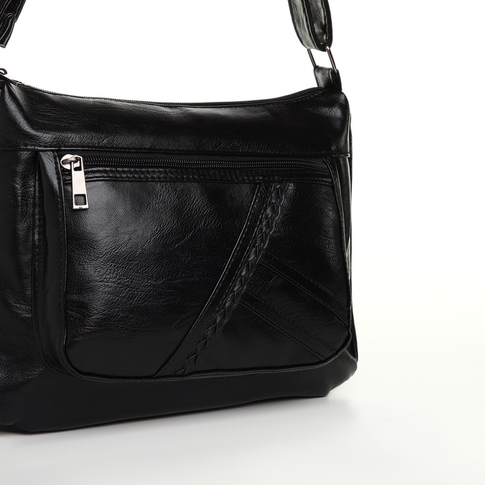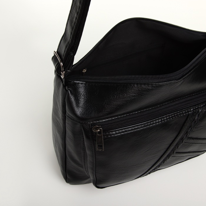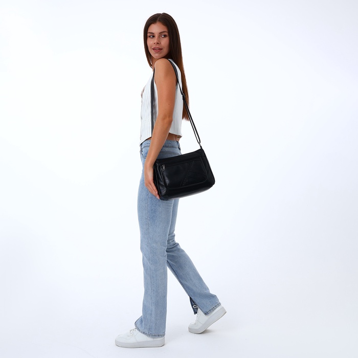 Сумка кросс-боди женская, большого размера, на молнии, 28×10×20 см, чёрная — Характеристики