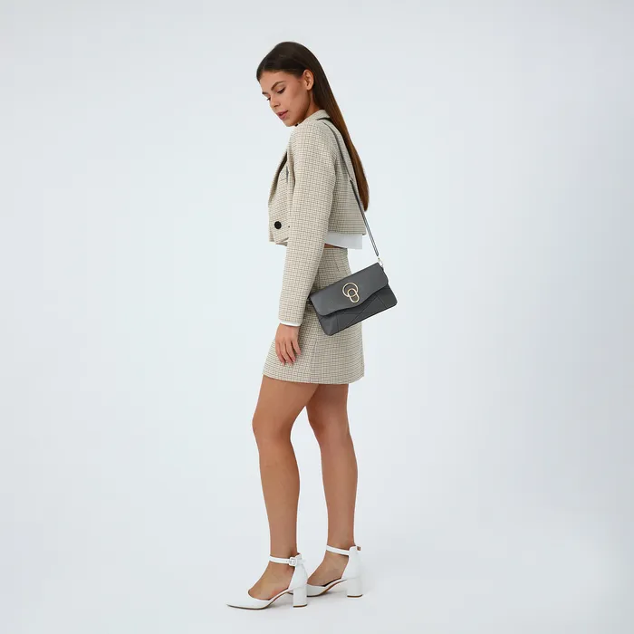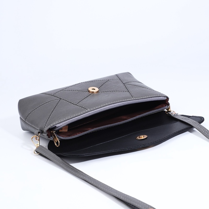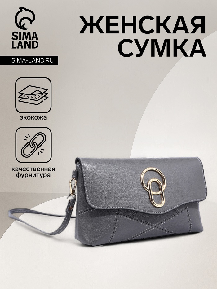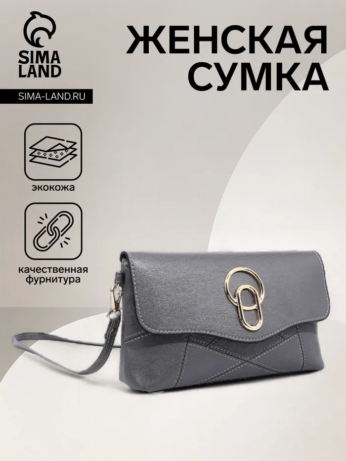 Сумка кросс-боди женская, длинный ремень, на магните, 24×6×14 см, серая — Характеристики
