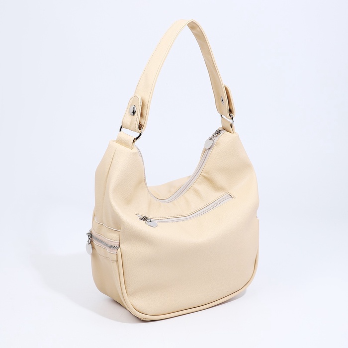 Сумка - мешок женская на молнии, 26×10×26 см, бежевая — Характеристики