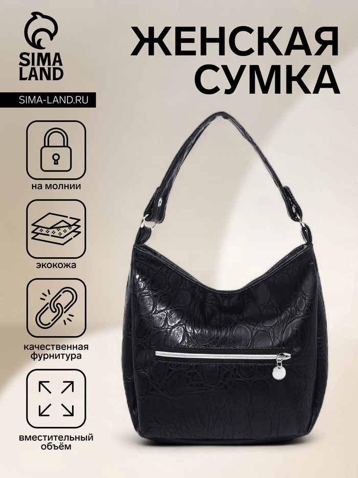 Сумка - мешок женская на молнии, 27×10×25 см, чёрная — Характеристики