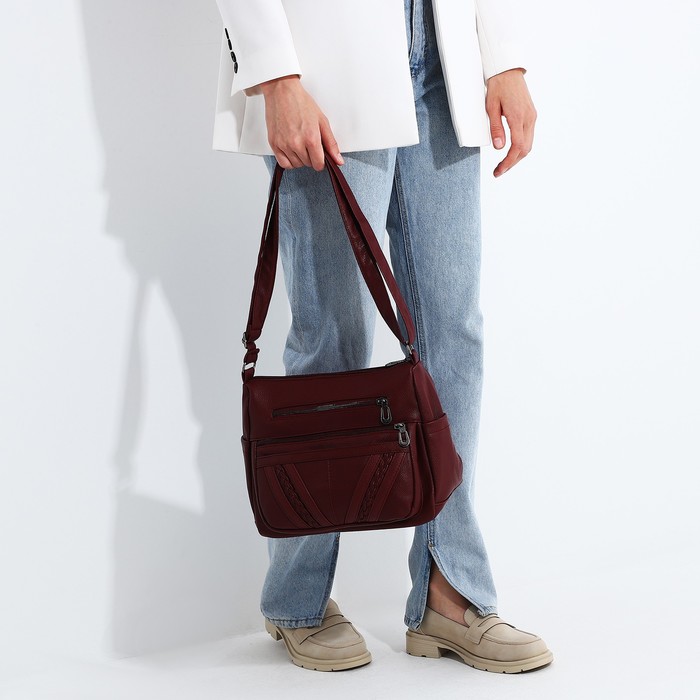 Сумка - мешок женская на молнии, 27×13×20 см, бордовая — Характеристики